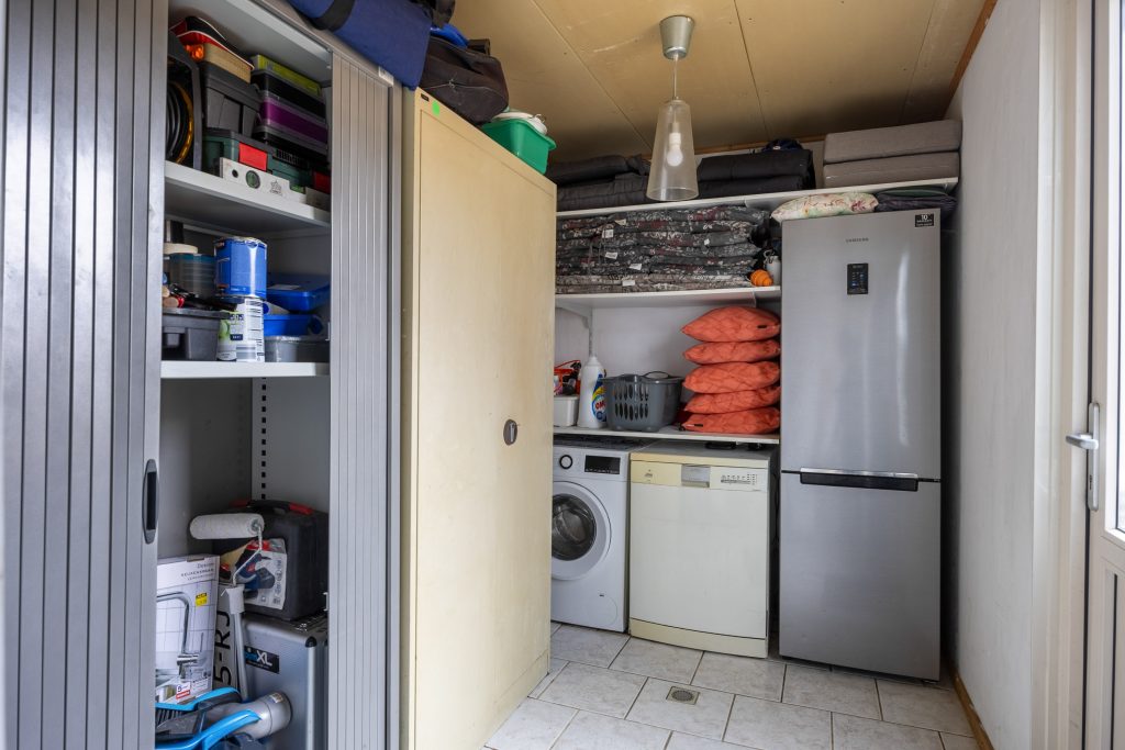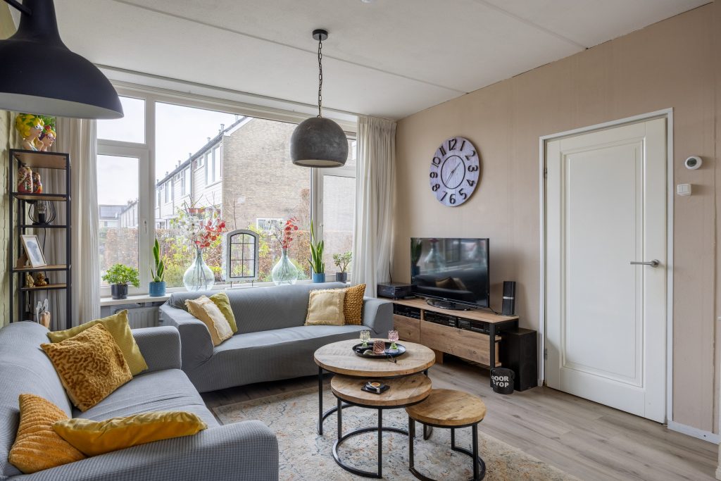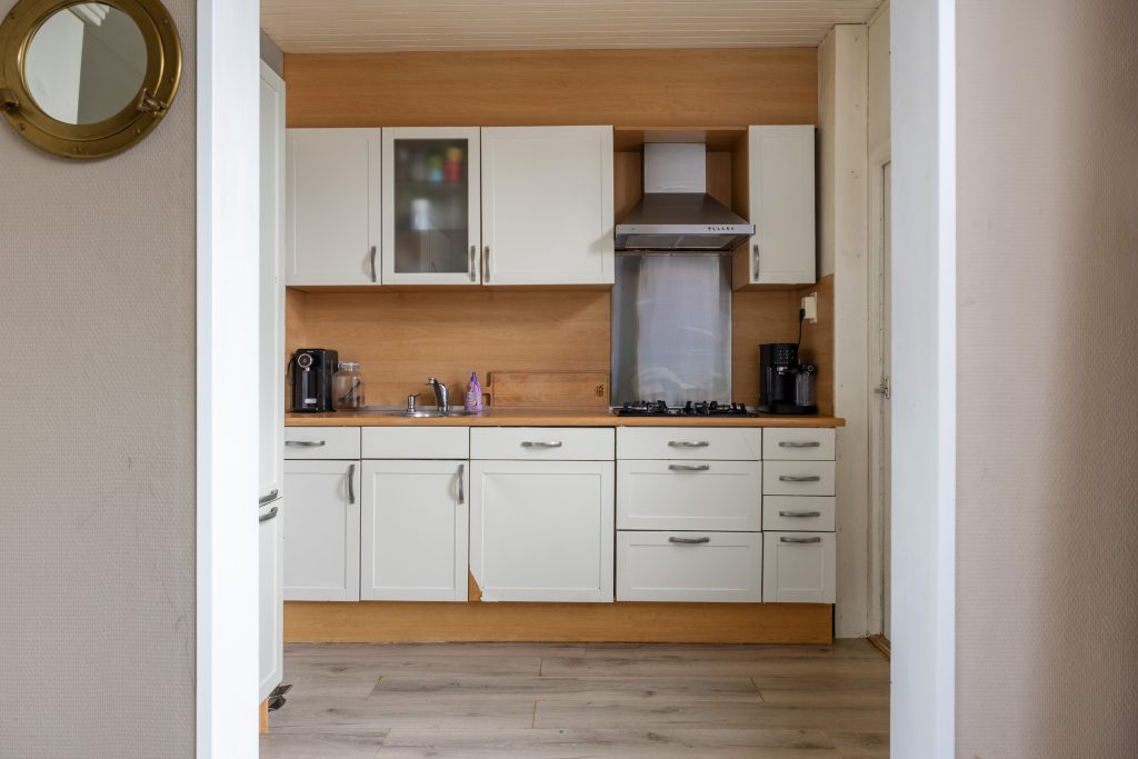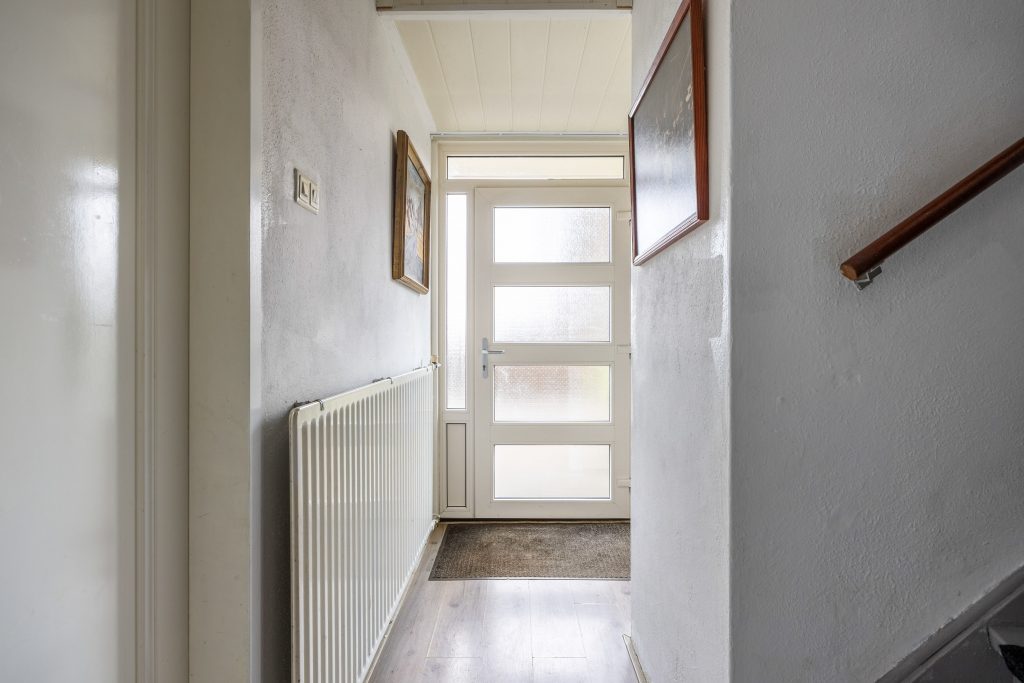 Begane grond: Vanuit de entree/hal met meterkast (2012), trapopgang, trapkast en toilet, kom je in de lichte doorzon woonkamer van ca. 26m² met zicht door de straat. De halfopen keuken kent een nette, doch wat gedateerde keukeninrichting in hoekopstelling, voorzien van enig inbouwapparatuur, o.a. oven (2025) en magnetron (2021). Aansluitend aan de keuken kom je in de ruime bijkeuken met witgoedaansluiting, bergruimte en achterdeur met toegang tot de tuin.