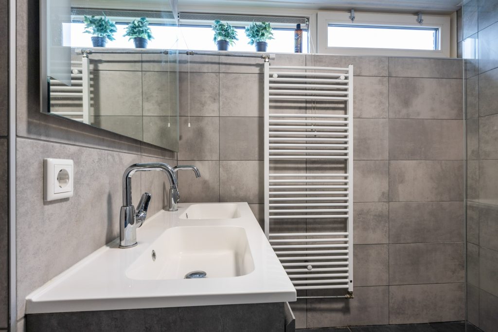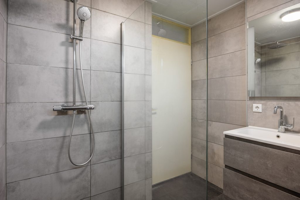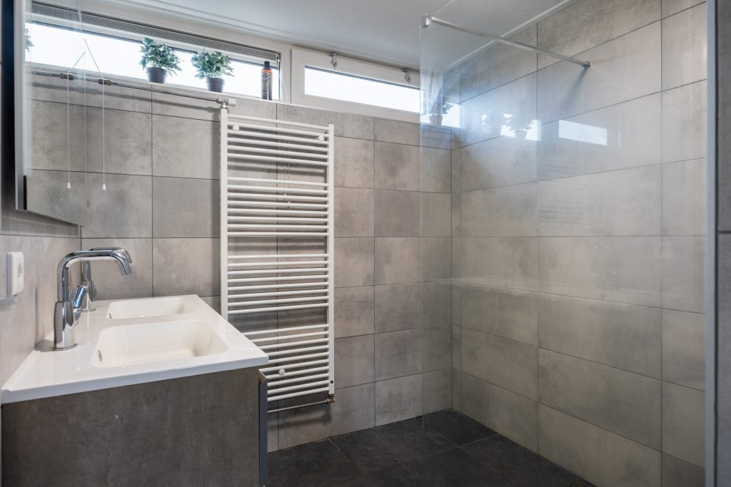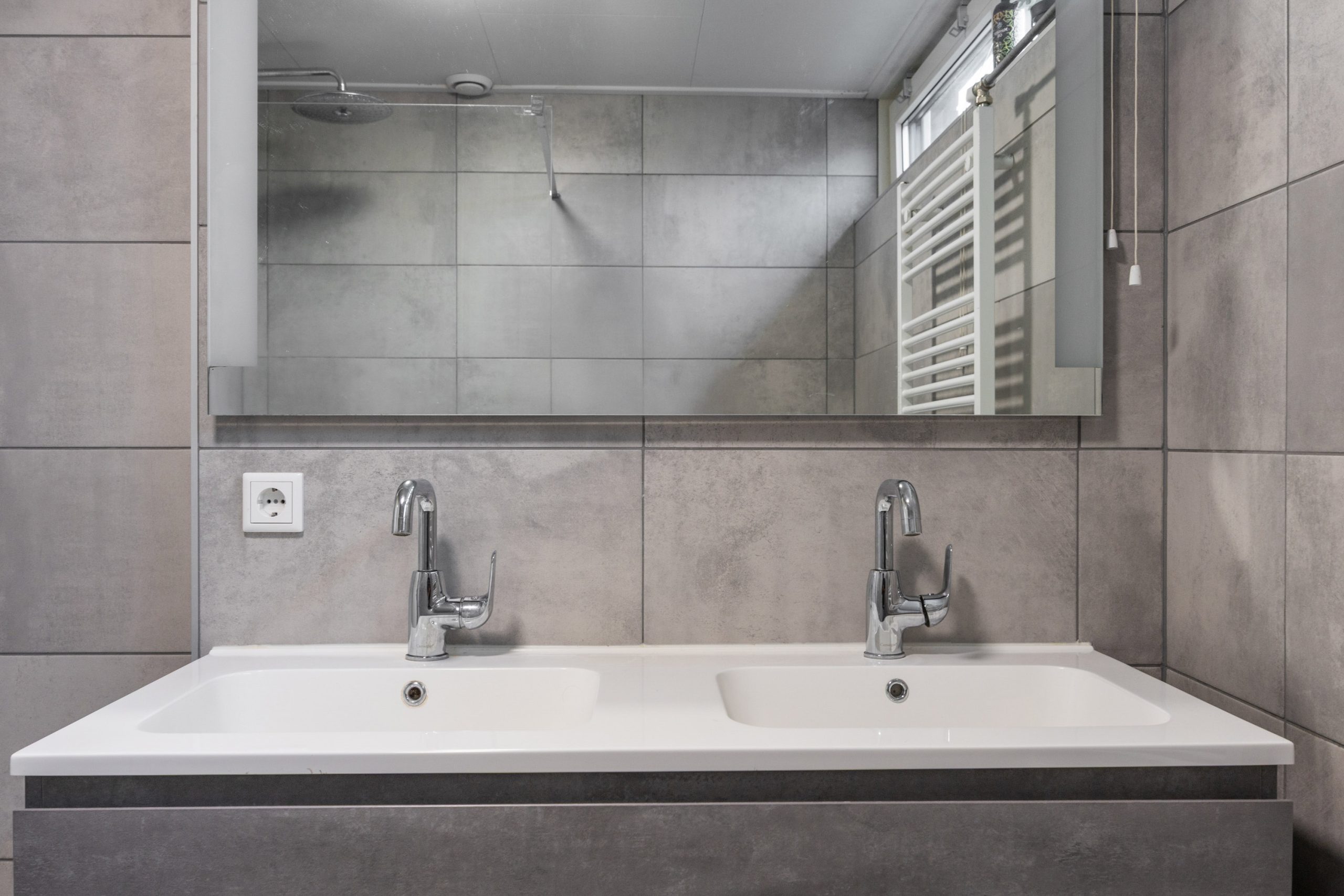 Vanaf de overloop heb je toegang tot de 3 slaapkamers van resp. ca. 6,5, 12 en 14m² en de moderne, in 2023 vernieuwde, badkamer met dubbel wastafelmeubel, ruime inloopdouche en design radiator.