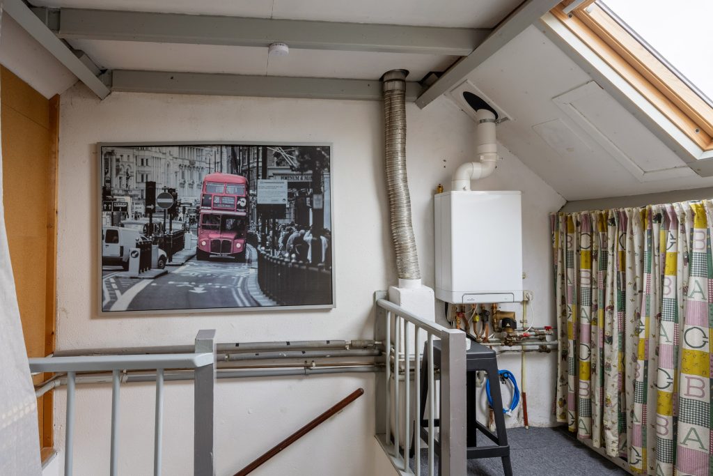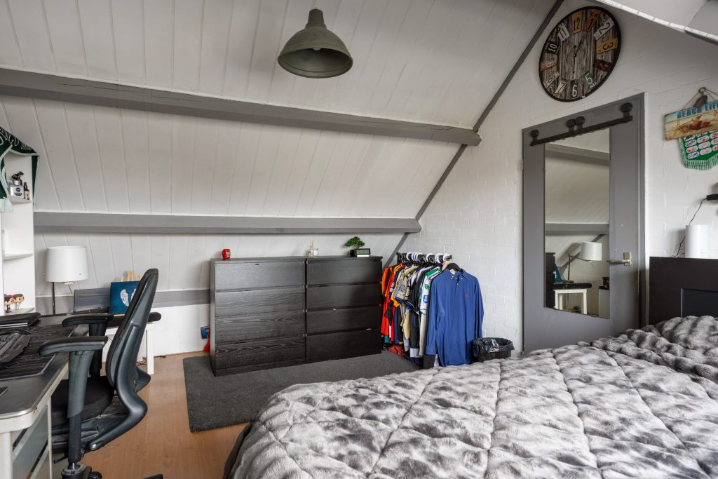 De 2e verdieping bereik je middels een vaste trap vanaf de overloop en bestaat uit een overloop met bergruimte en o.a. de cv-ketel en een fraaie zolder-/slaapkamer van ca. 15m² voorzien van grote dakkapel.