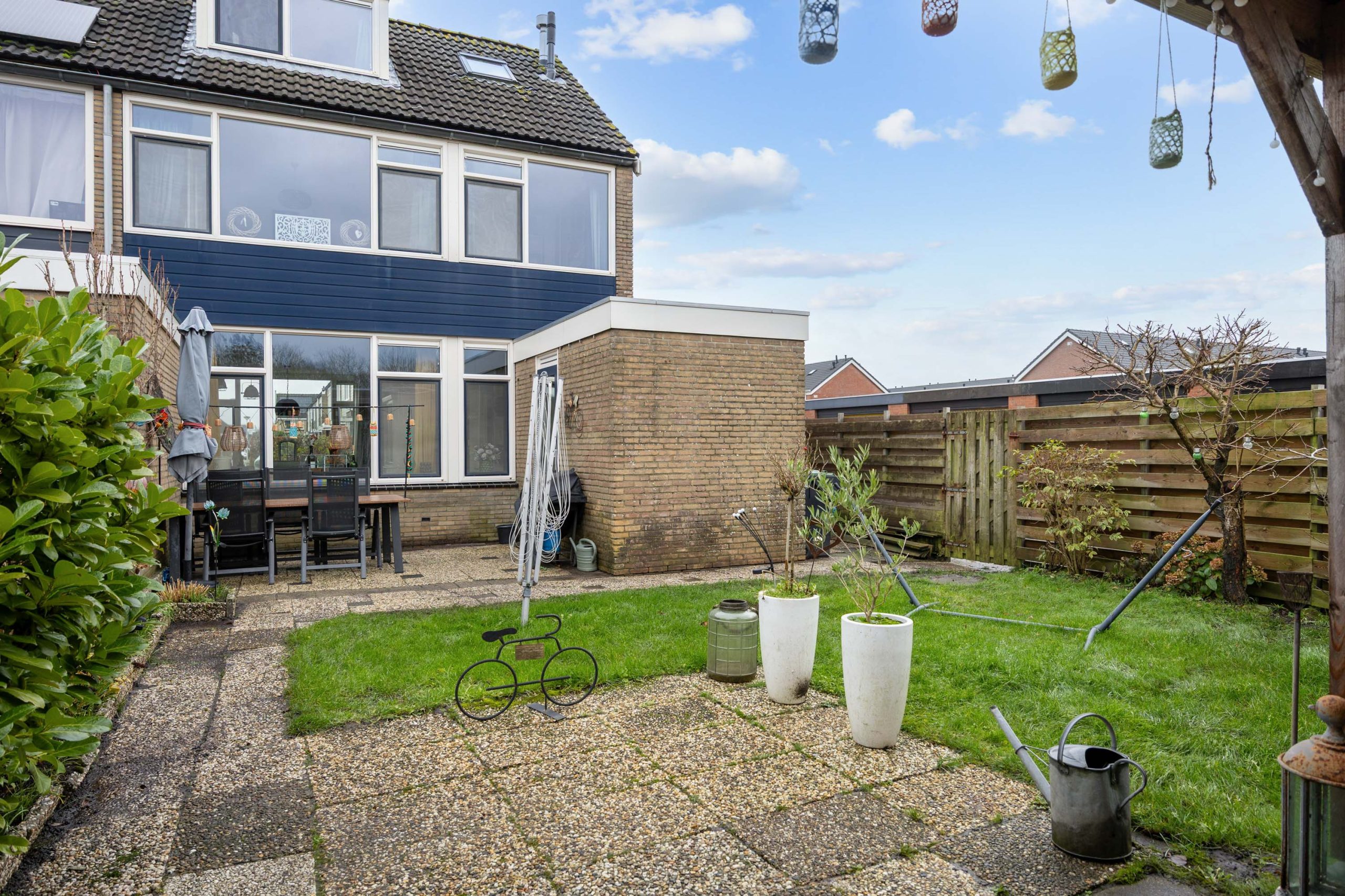 De, op het zonnige westen gesitueerde, verrassend ruime tuin kenmerkt zich door een besloten ligging en veel privacy door het ontbreken van directe achterburen. Daarnaast staat achter in de tuin een gezellige veranda/ terrasoverkapping.