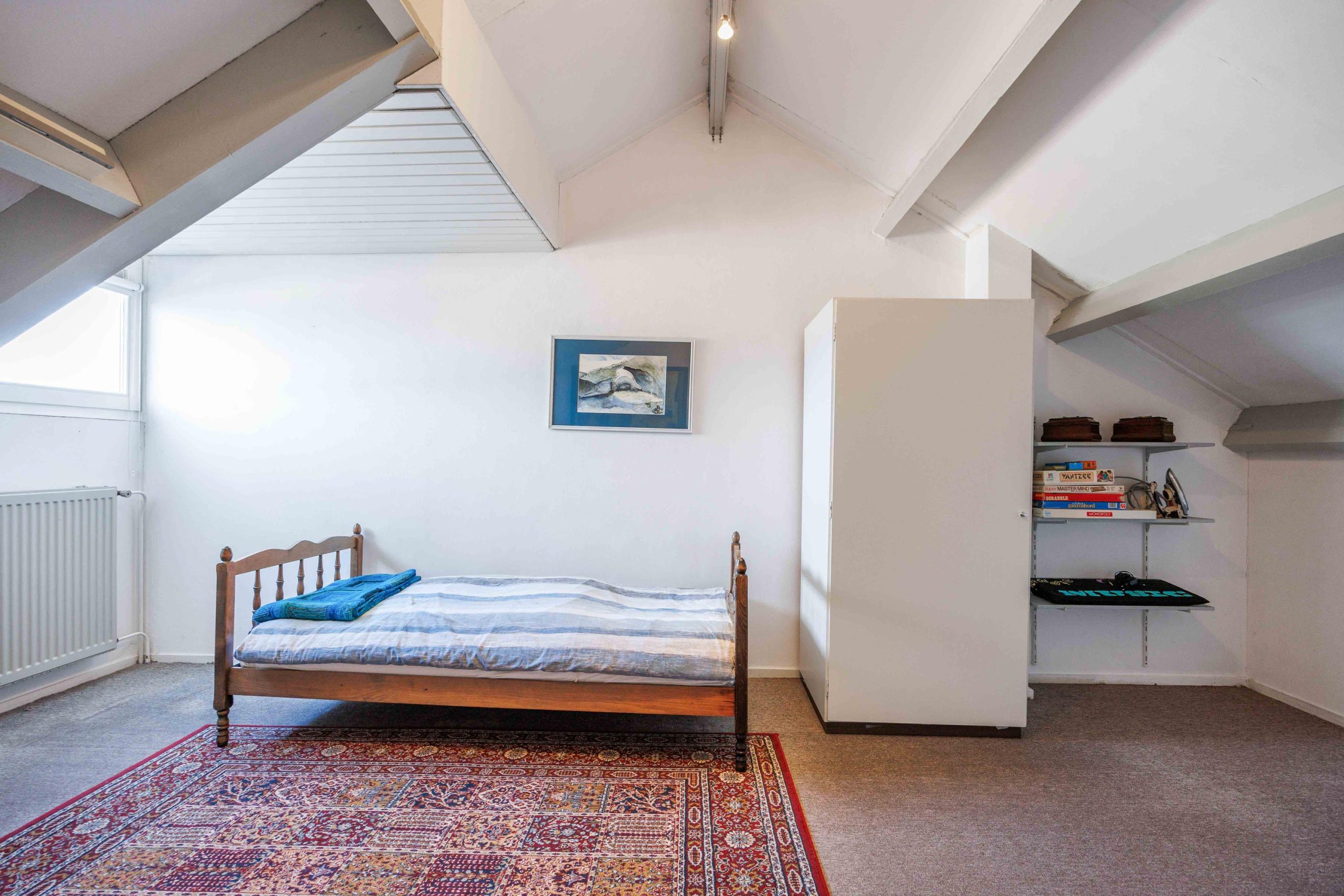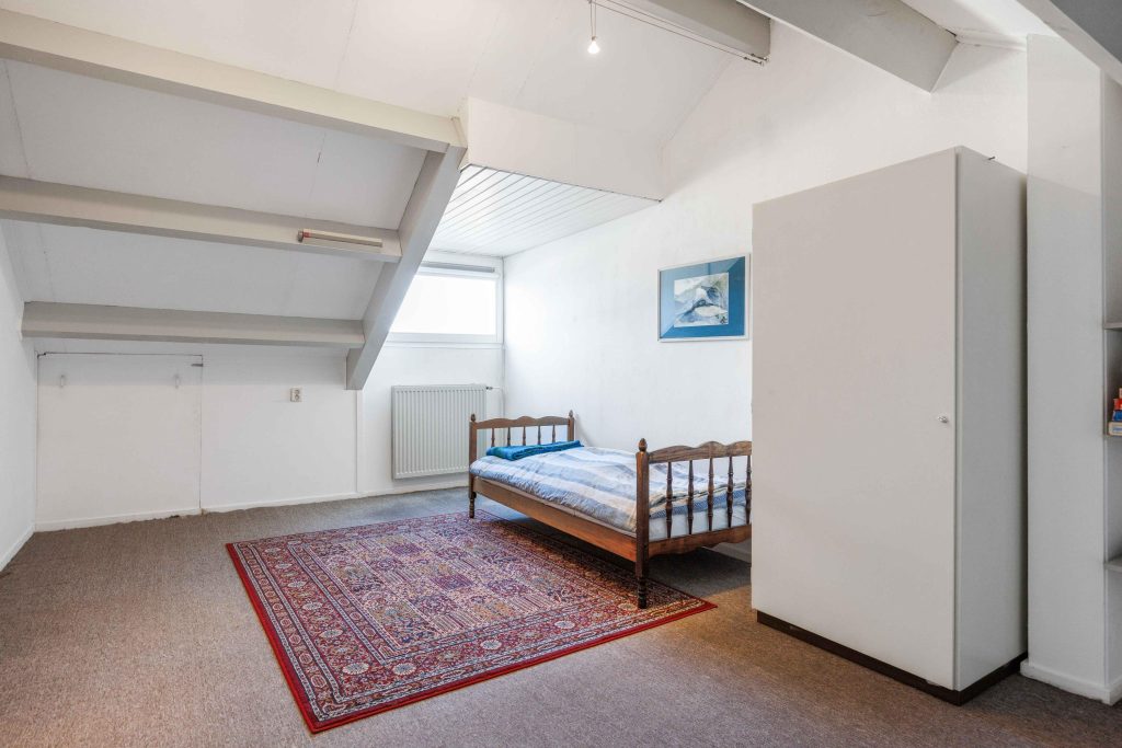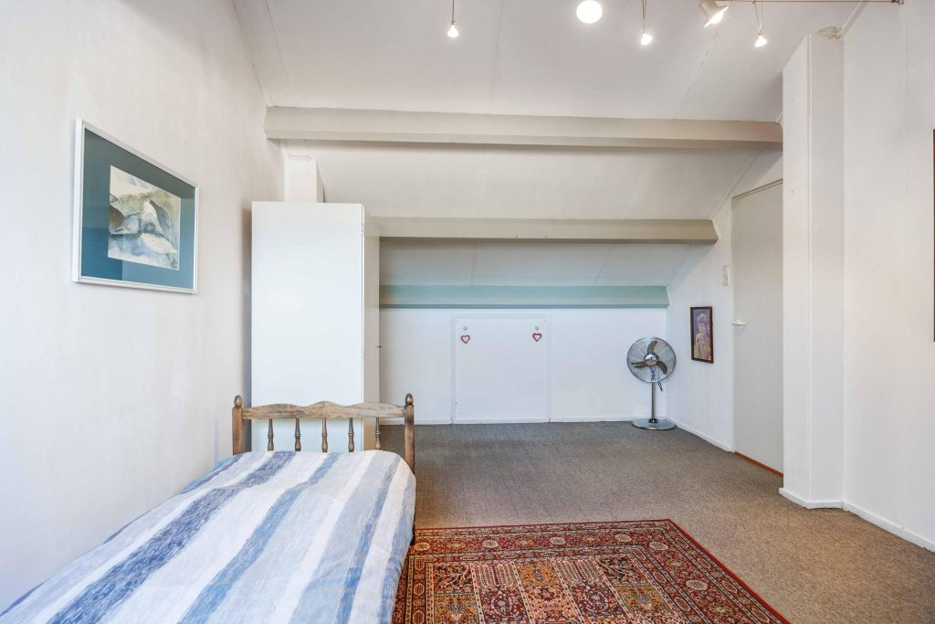 De 2e verdieping is bereikbaar middels een vaste trap vanaf de overloop en bestaat naast de overloop met kastruimte uit een fraaie zolder-/slaapkamer van ruim 18m²