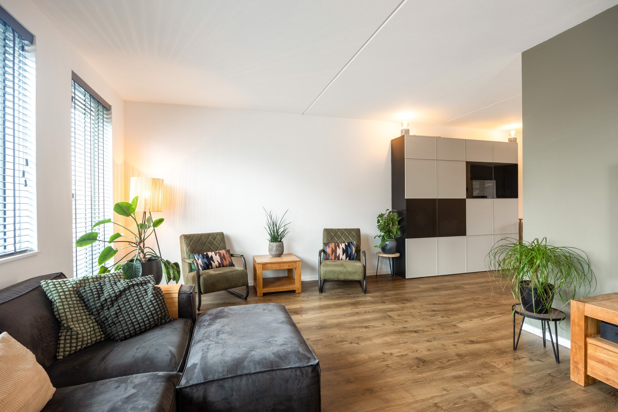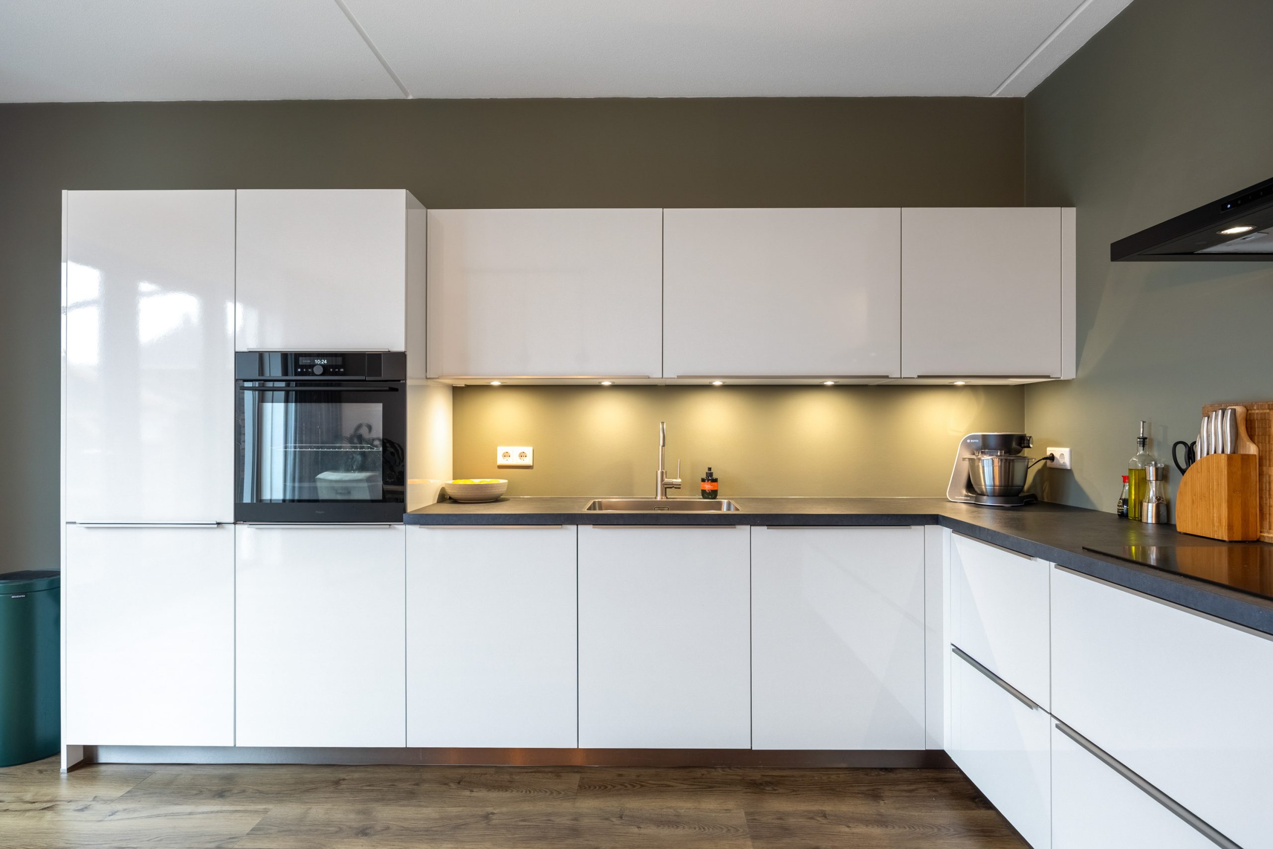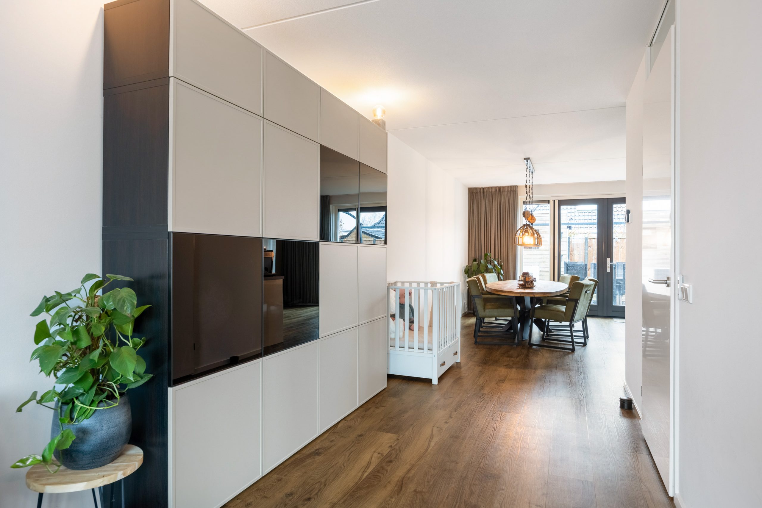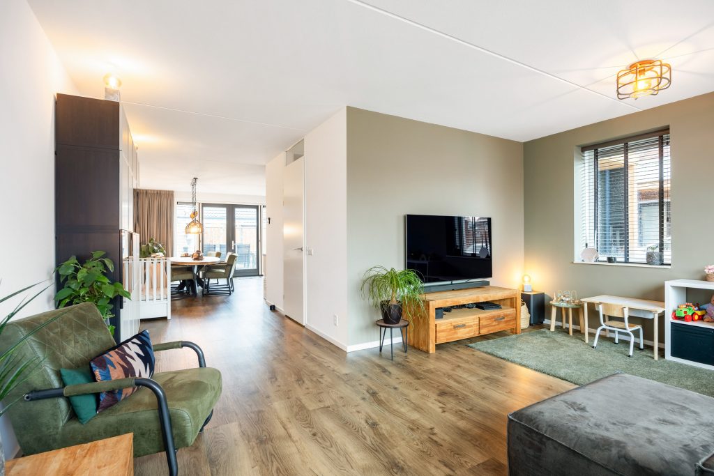 Vanuit de entree/hal met toilet (2021), meterkast, trapkast, cv-kast en trapopgang, kom je in de royale, lichte leefruimte van samen ca. 58m². Deze heerlijke ruimte bestaat uit een gezellige L-vormige woonkamer van ca. 29m² aan de straatzijde en een ruime woonkeuken van ca. 26m² aan de tuinzijde. De woonkeuken heeft o.a. openslaande deuren naar de tuin en een moderne keukeninrichting (2021) in hoekopstelling voorzien van moderne inbouwapparatuur zoals een koel-vriescombinatie, stoom-oven, inductie kookplaat, afzuigkap en vaatwasser. De gehele begane grond vloer is voorzien van vloerverwarming.