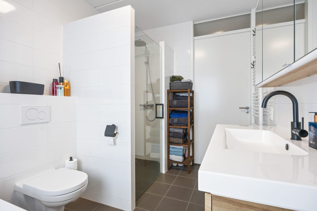 Vanaf de overloop is er toegang tot de badkamer en de 3 prima slaapkamers van resp. ca. 9,5, 11,5 en 12,5m². De nette badkamer (2021) is voorzien van een royale inloopdouche, 2e toilet, ligbad en een wastafelmeubel. Bovendien is ook de gehele 1e verdieping voorzien van vloerverwarming.