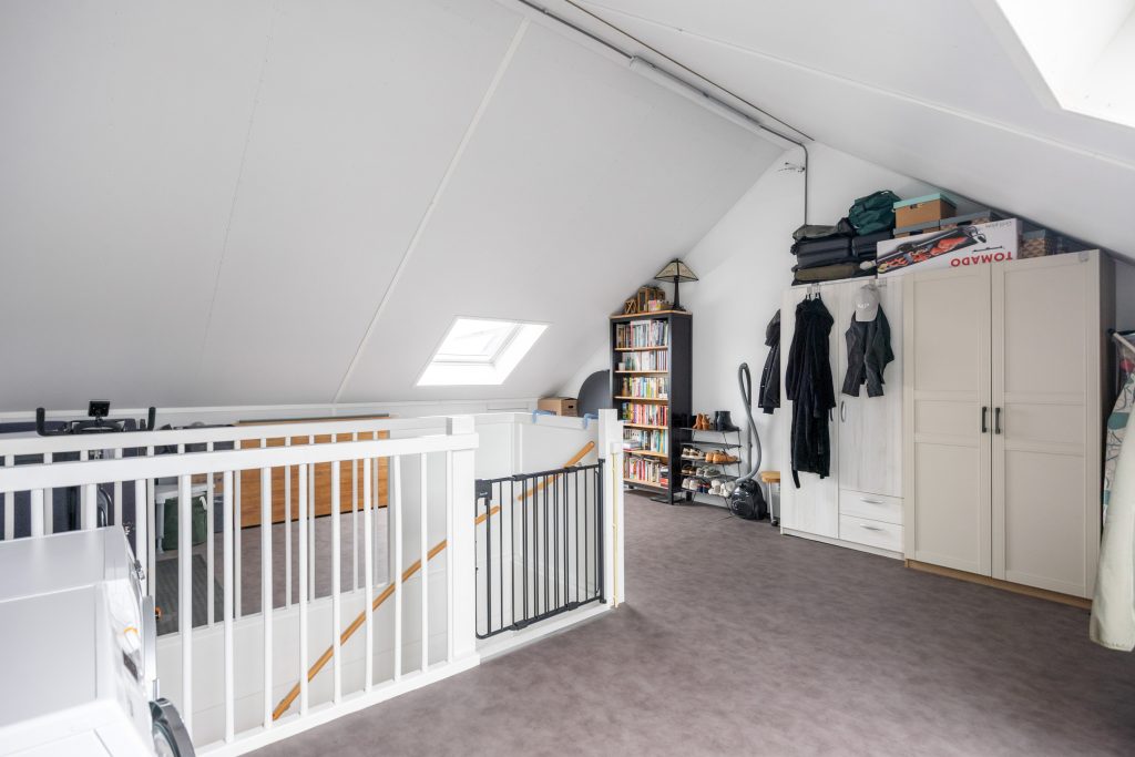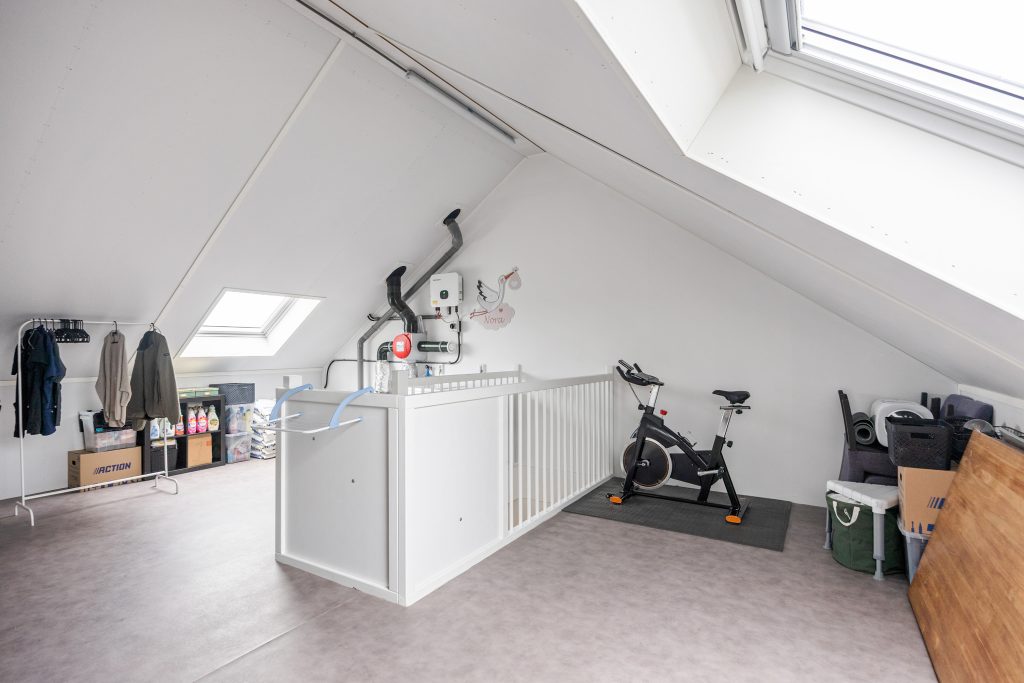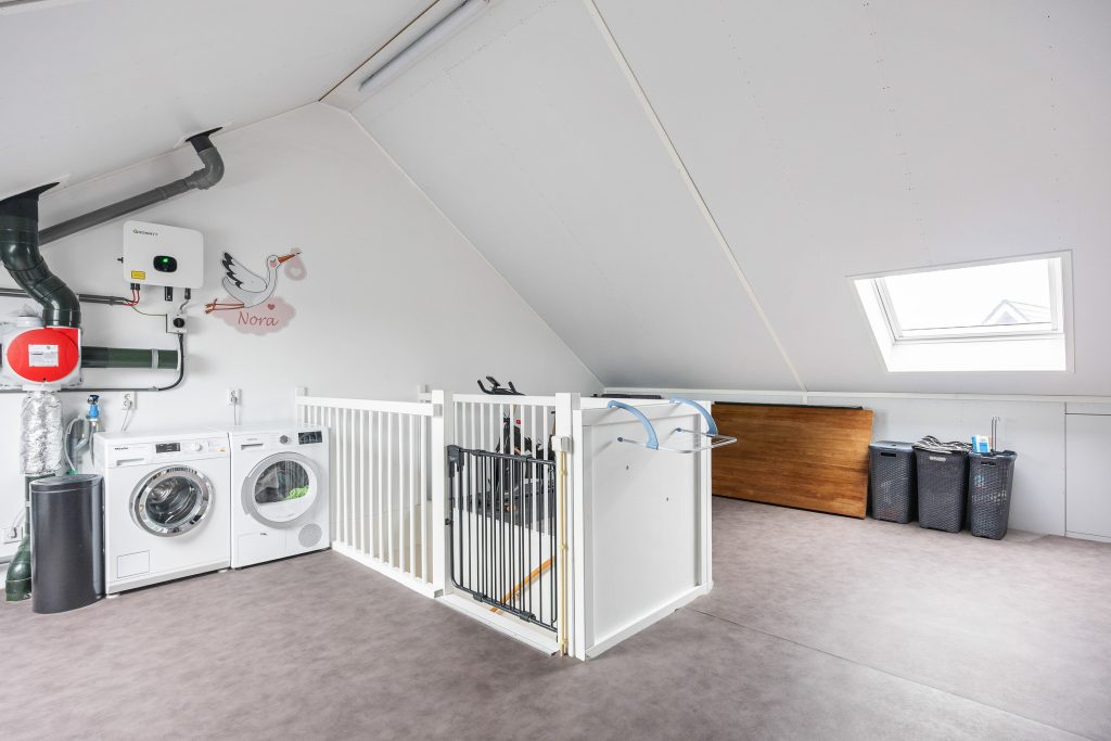 De 2e verdieping is bereikbaar middels vaste trap en bestaat uit een royale zolderverdieping met de mogelijkheid om hier een extra vierde (slaap)kamer te realiseren. Deze ruimte is voorzien van 2 grote dakramen, witgoedaansluitingen en hier bevindt zich ook de opstelplaats voor de omvormer, mechanische ventilatie en waterontharder