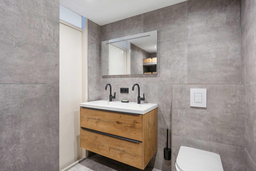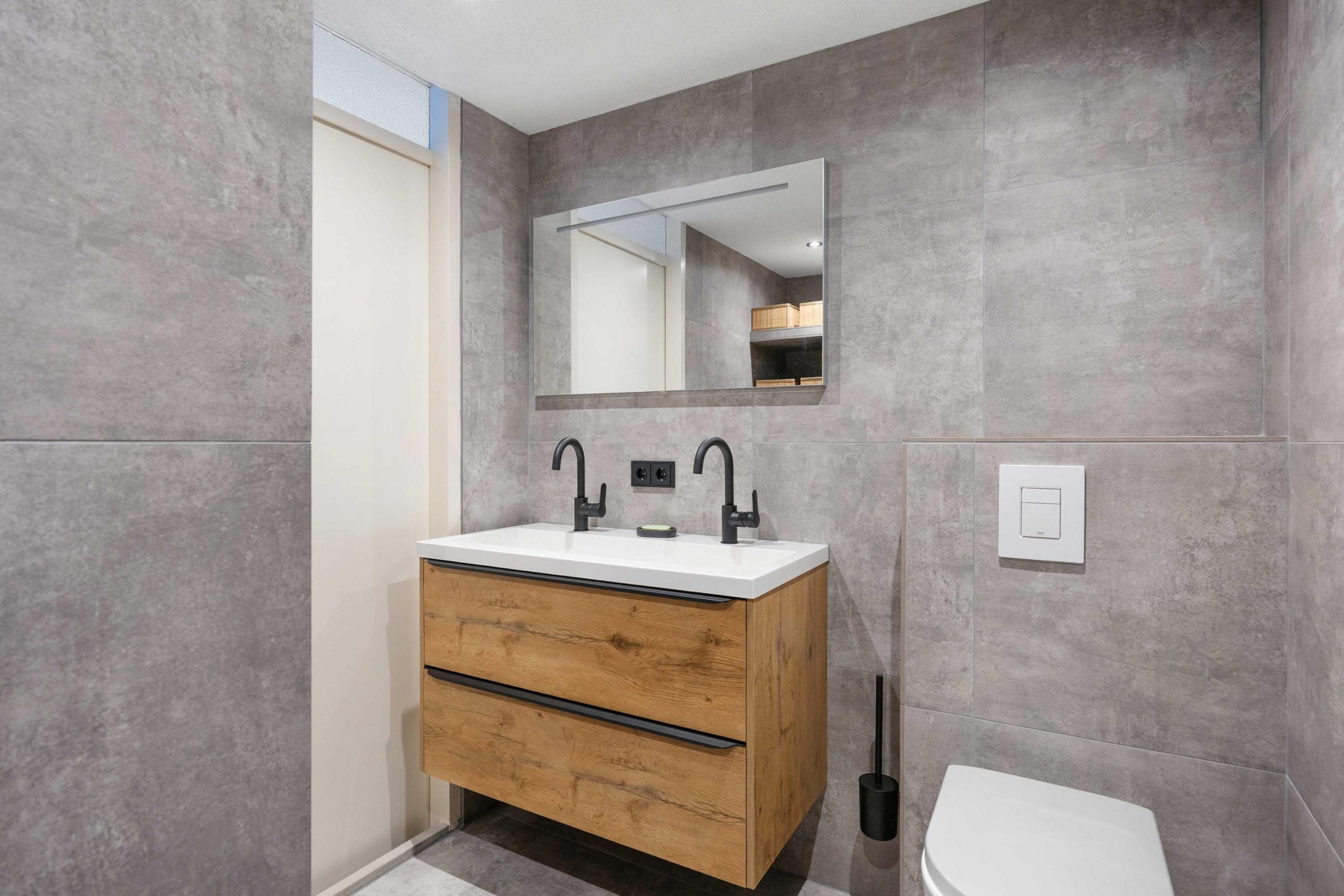 Vanaf de overloop is er toegang tot de badkamer en de drie prima slaapkamers van resp. ca. 5,5, 7,5 en 15m². De moderne badkamer uit 2023 is voorzien van een ruime inloopdouche, tweede toilet, mechanische ventilatie en een dubbel wastafelmeubel.