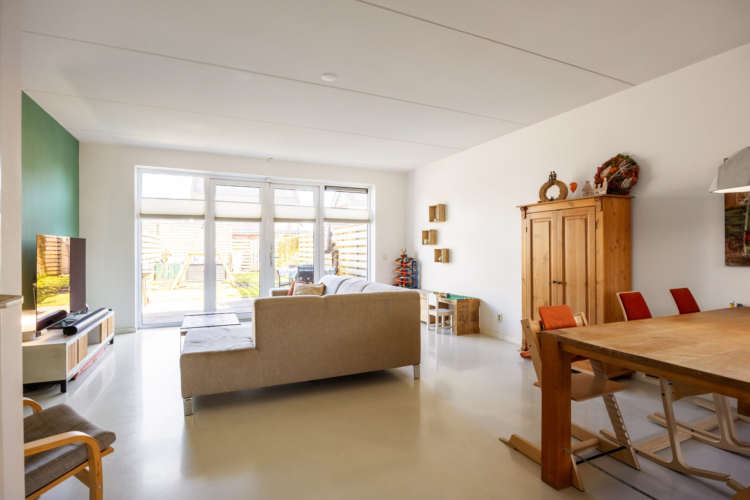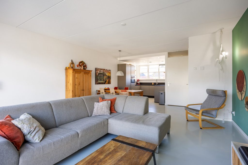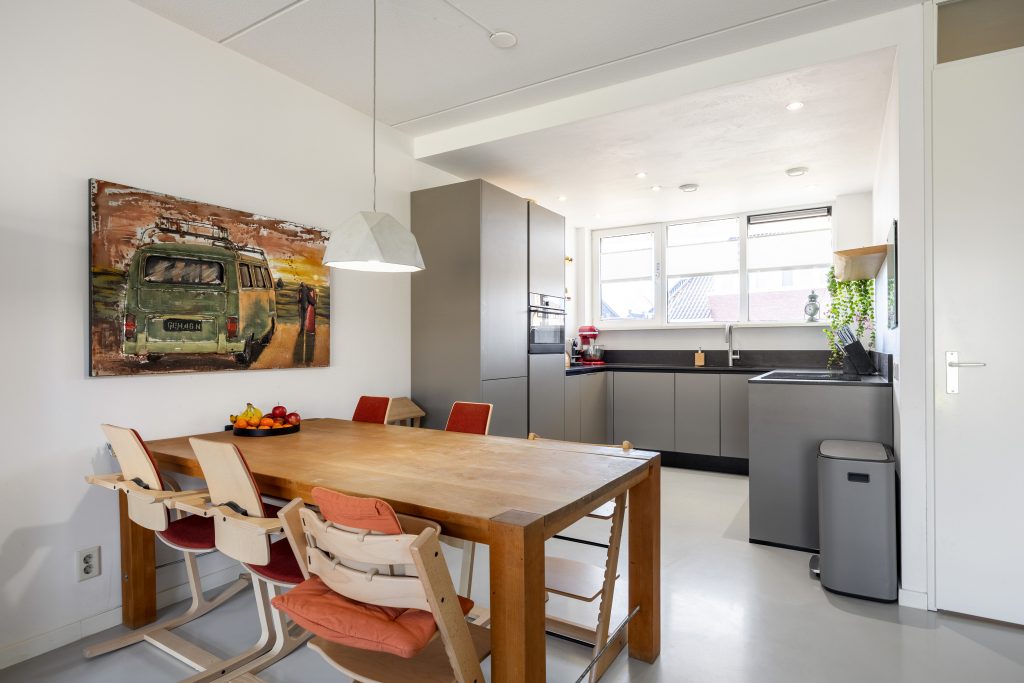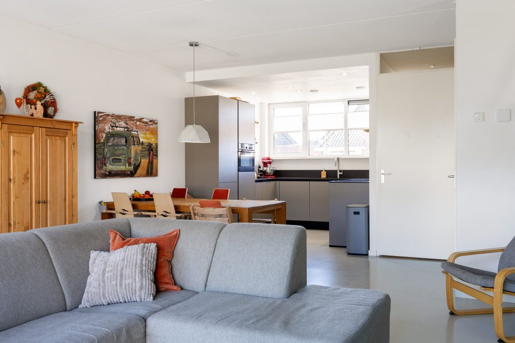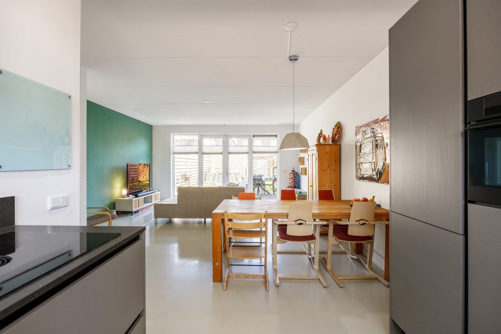 Vanuit de entree/hal met modern toilet, meterkast en trapopgang, kom je in de royale, lichte leefruimte van ruim 40m². Deze heerlijke ruimte bestaat uit een gezellige tuingerichte woonkamer met o.a. openslaande tuindeuren naar het terras en aan de straatzijde de moderne keukeninrichting (2022). De keuken is voorzien van moderne inbouwapparatuur zoals een royale koelkast, ruime vriezer, combi-oven, inductie kookplaat met geïntegreerde afzuiging, Quooker en vaatwasser. De gehele begane grond vloer is voorzien van vloerverwarming.