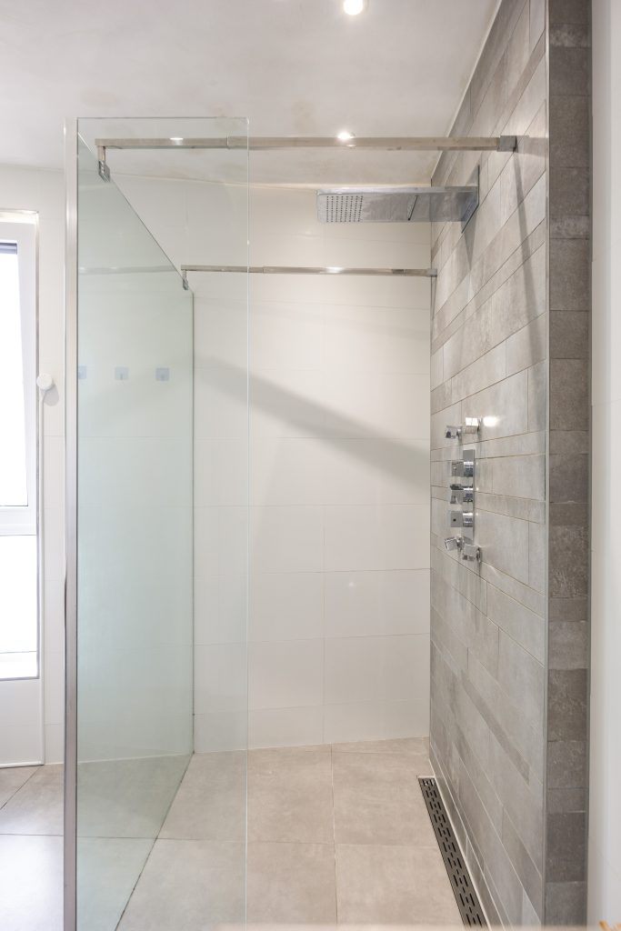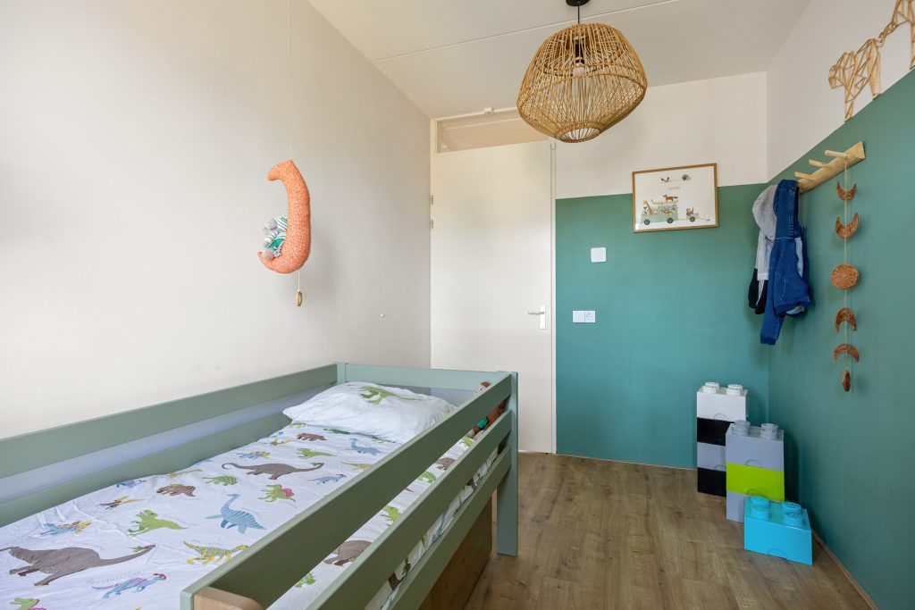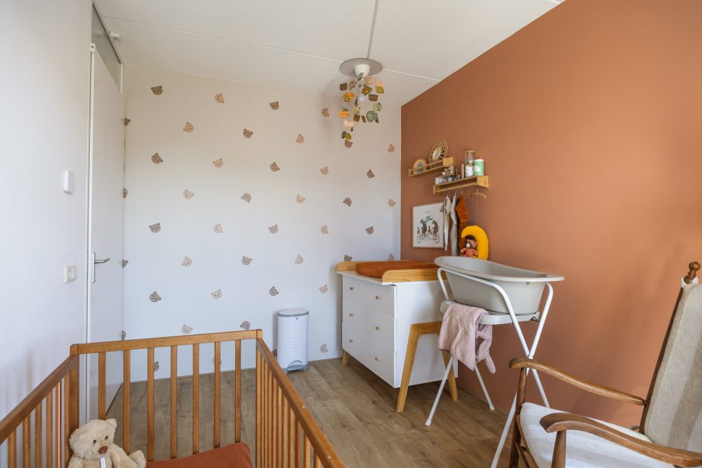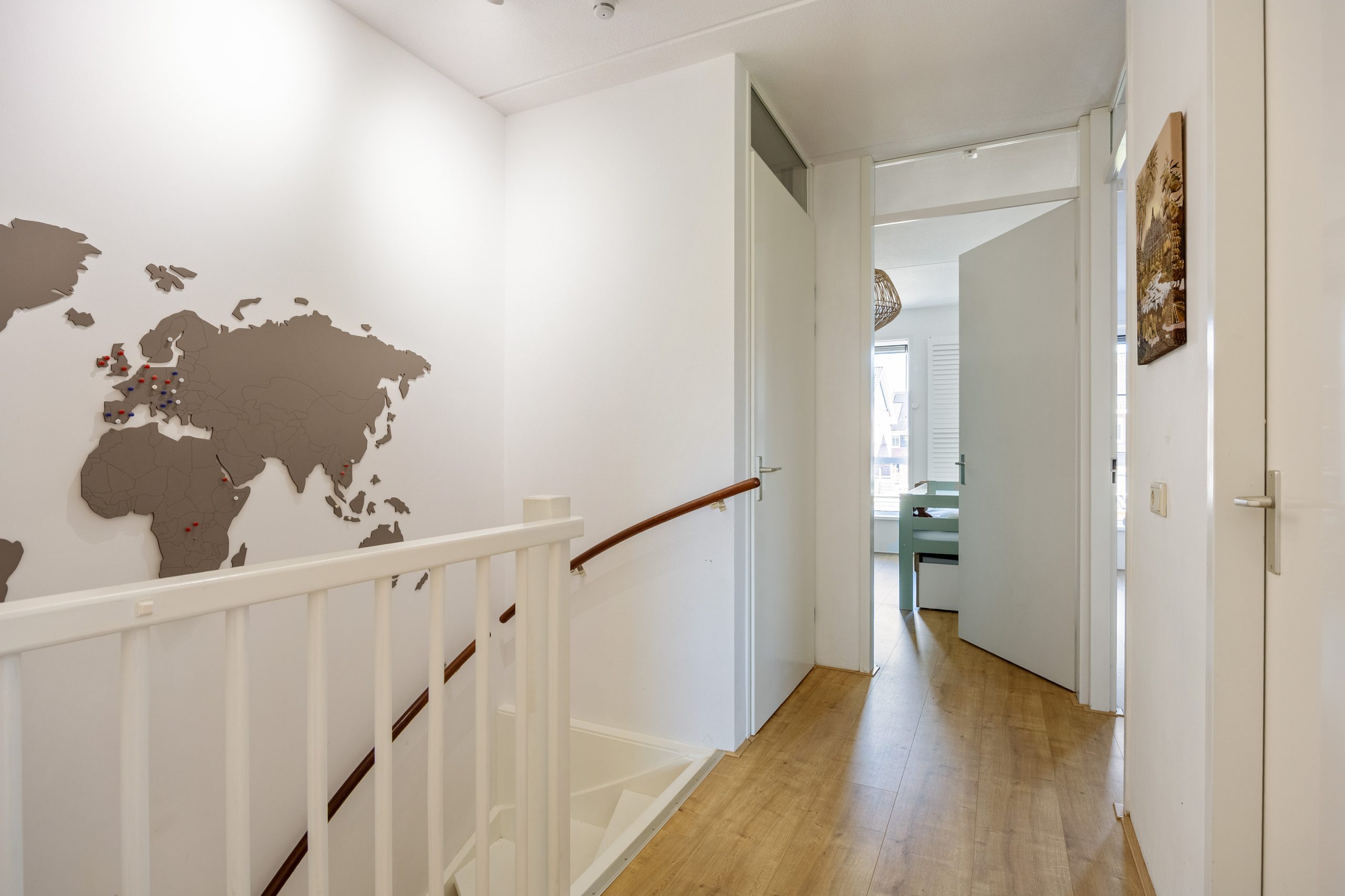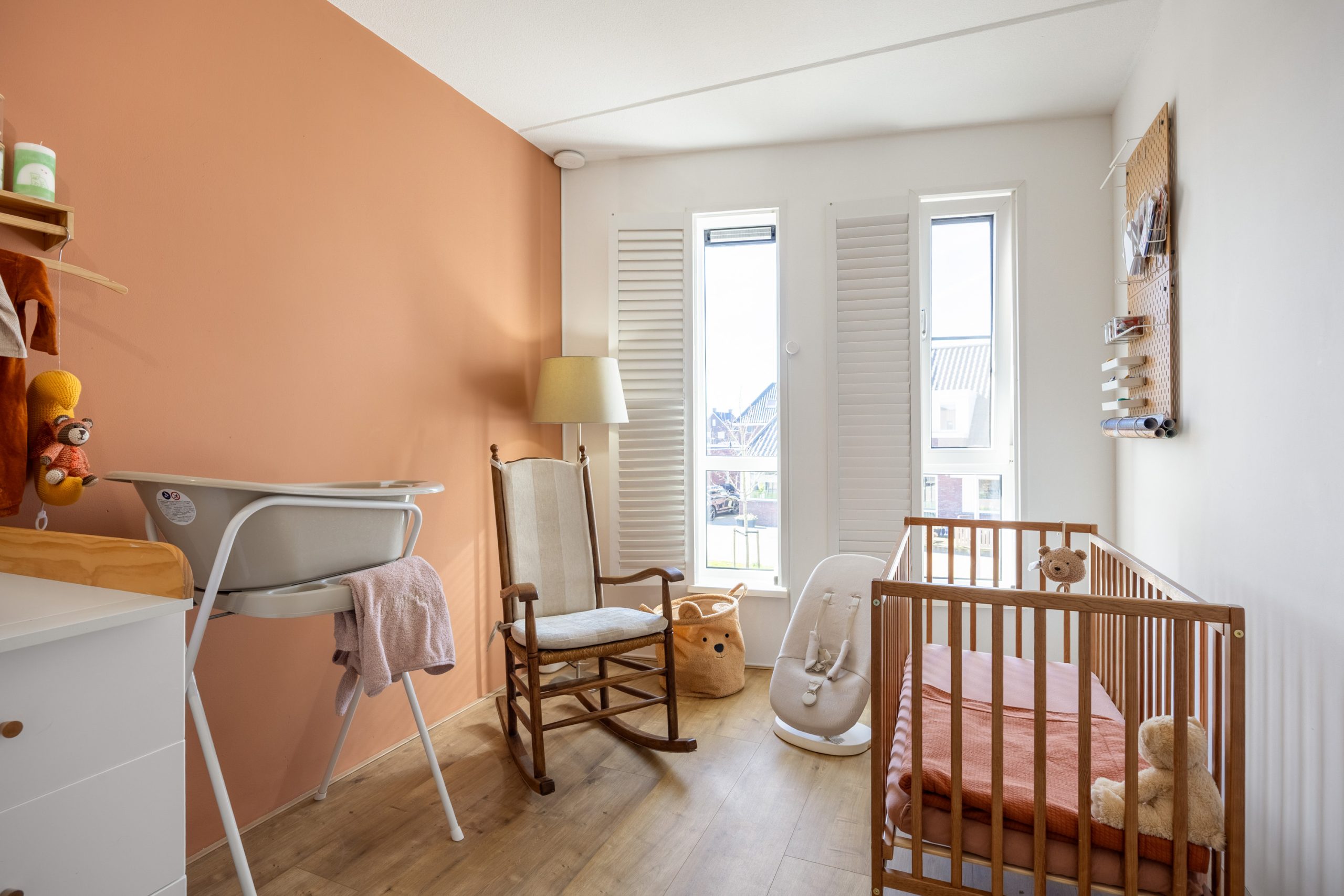 Vanaf de overloop is er toegang tot de badkamer, de praktische witgoedruimte en de 3 prima slaapkamers van resp. ca. 9,5, 10 en 13,5m². De moderne badkamer is voorzien van een royale inloopdouche, 2e toilet en een dubbelwastafelmeubel. Bovendien is ook de gehele 1e verdieping, inclusief de badkamer, voorzien van vloerverwarming.