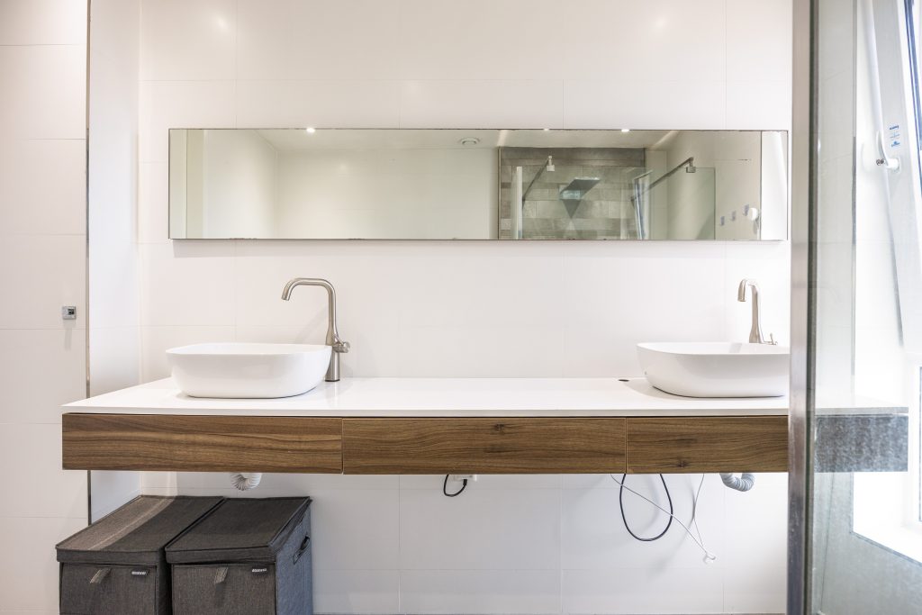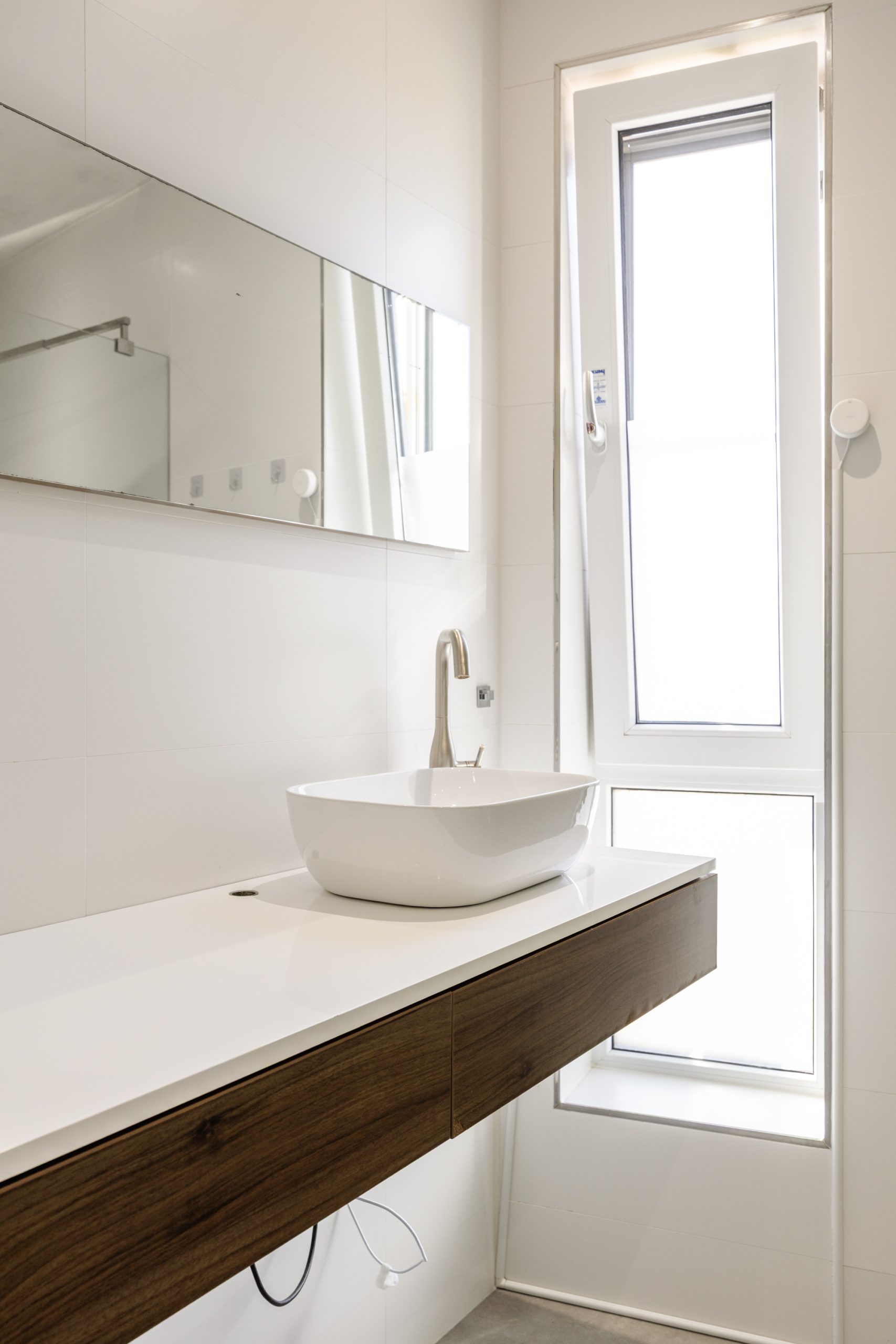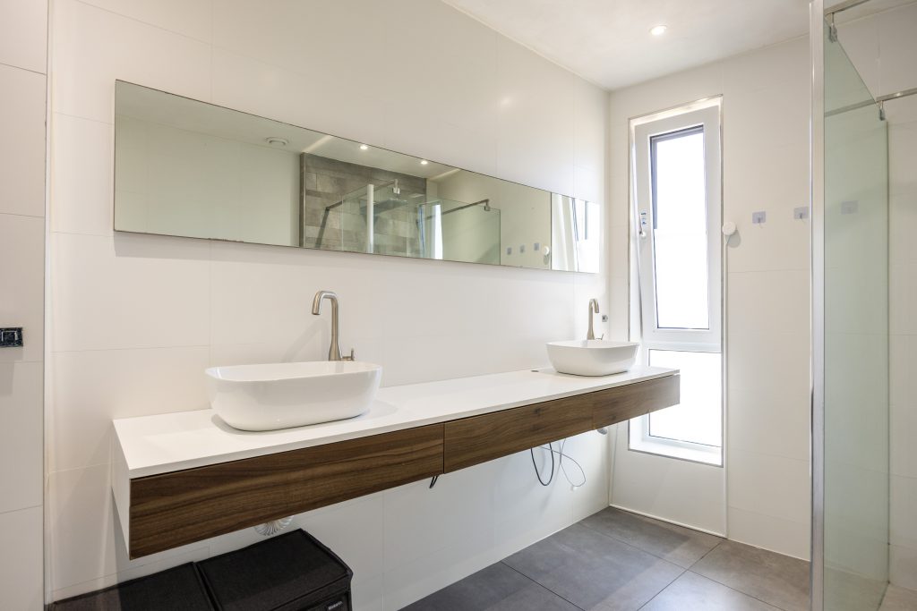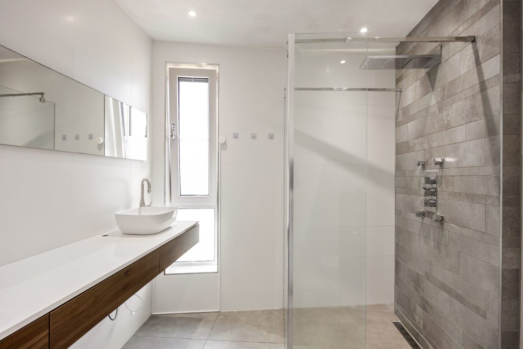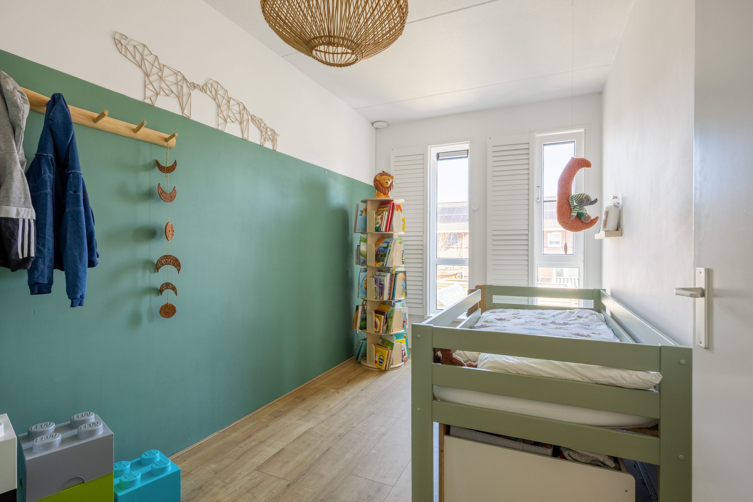 Vanaf de overloop is er toegang tot de badkamer, de praktische witgoedruimte en de 3 prima slaapkamers van resp. ca. 9,5, 10 en 13,5m². De moderne badkamer is voorzien van een royale inloopdouche, 2e toilet en een dubbelwastafelmeubel. Bovendien is ook de gehele 1e verdieping, inclusief de badkamer, voorzien van vloerverwarming.