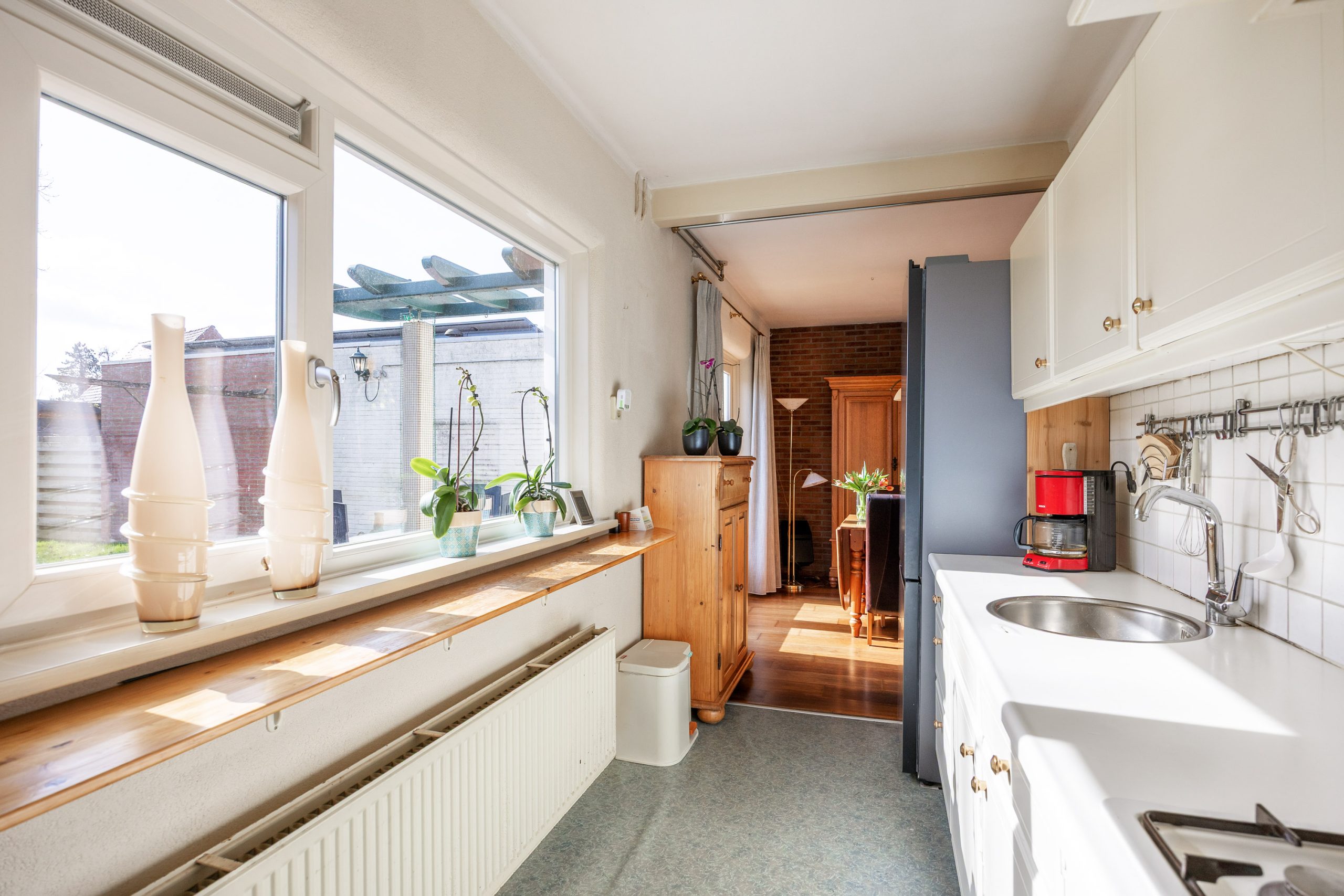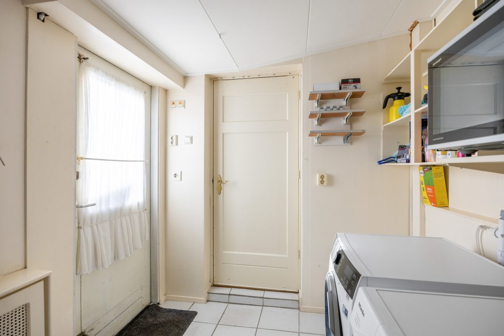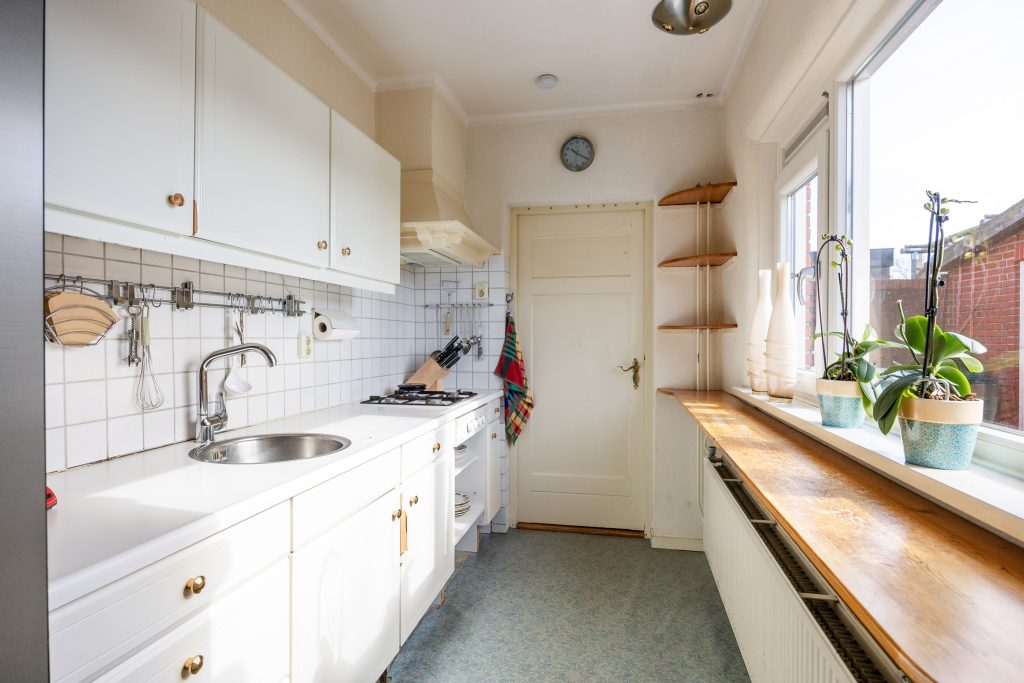Via de voordeur stap je de ruime hal binnen, waar je onder andere het toilet, de meterkast en de 10-traps (droge) kelder vindt. Aan het einde van de gang stap je de gezellige woonruimte binnen, bestaande uit een knusse zithoek aan de straatzijde met fraaie erker en een mooie ruimte voor de eettafel waarbij je via de openslaande deuren zicht hebt op de royale tuin. De halfopen keuken heeft een eenvoudige, doch nette keukeninrichting en vanuit de keuken loop je zo de bijkeuken in, alwaar je de cv-ketel en witgoedaansluitingen vindt.