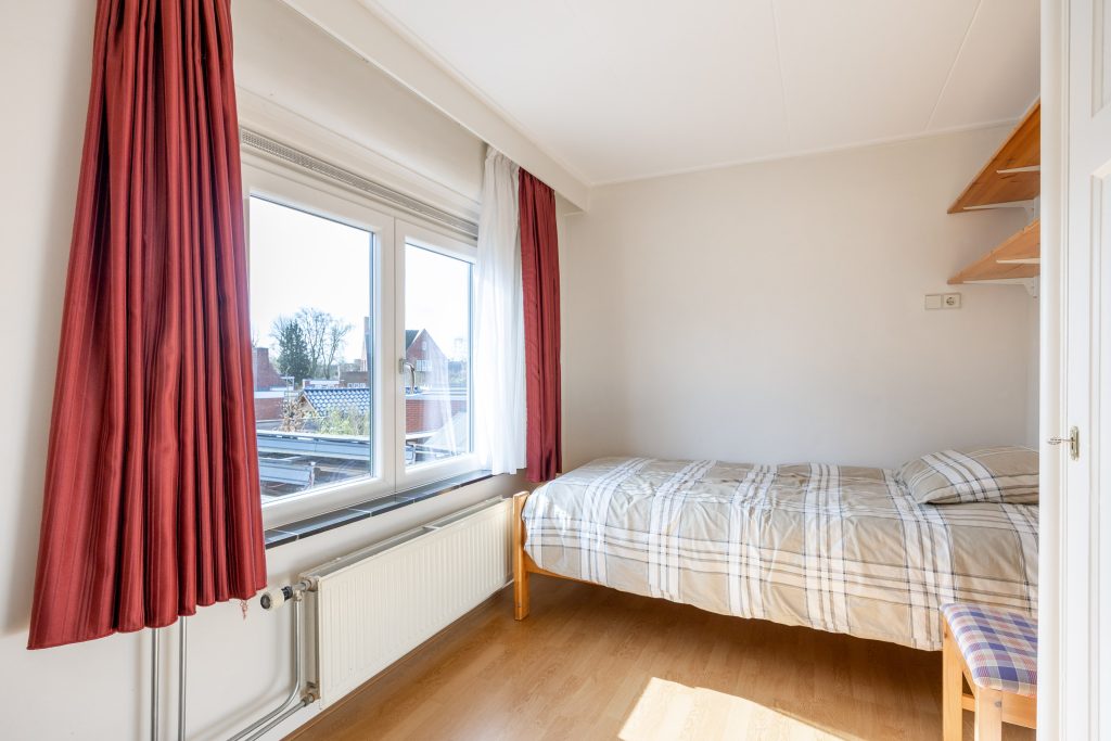 Vanaf de overloop heb je toegang tot de 4 slaapkamers van respectievelijk ca. 5,5, 7,5, 8 en 10m². Alle kamers zijn voorzien van een inbouw legkast. Alle kamers beschikken over kunststof kozijnen met HR++ isolatieglas met ventilatieroosters. De badkamer is voorzien van een douche en wastafel en middels een vlizotrap heb je vanaf de overloop toegang tot de bergzolder.