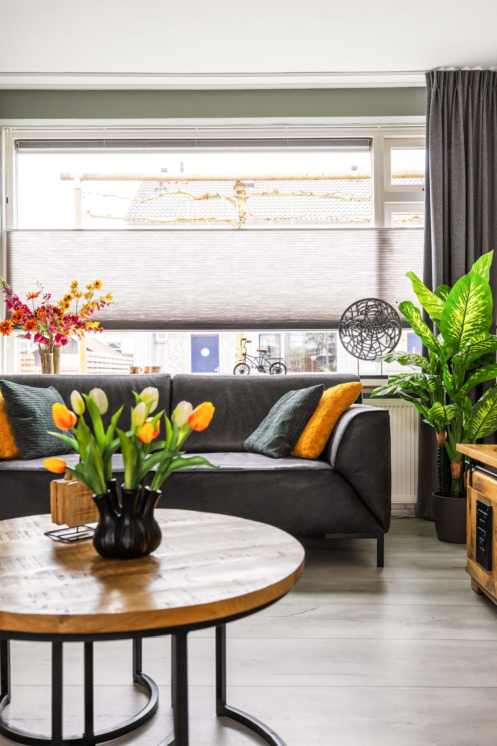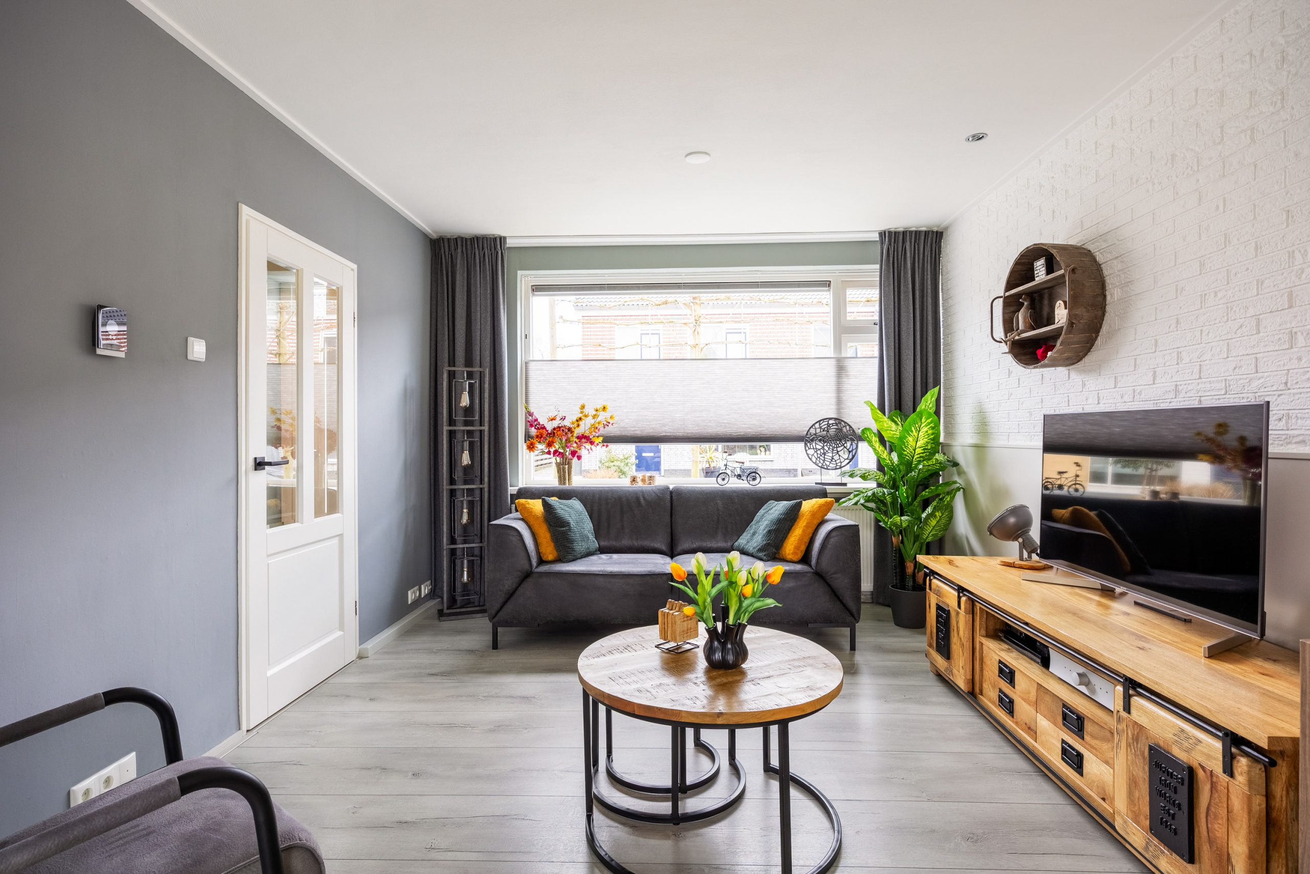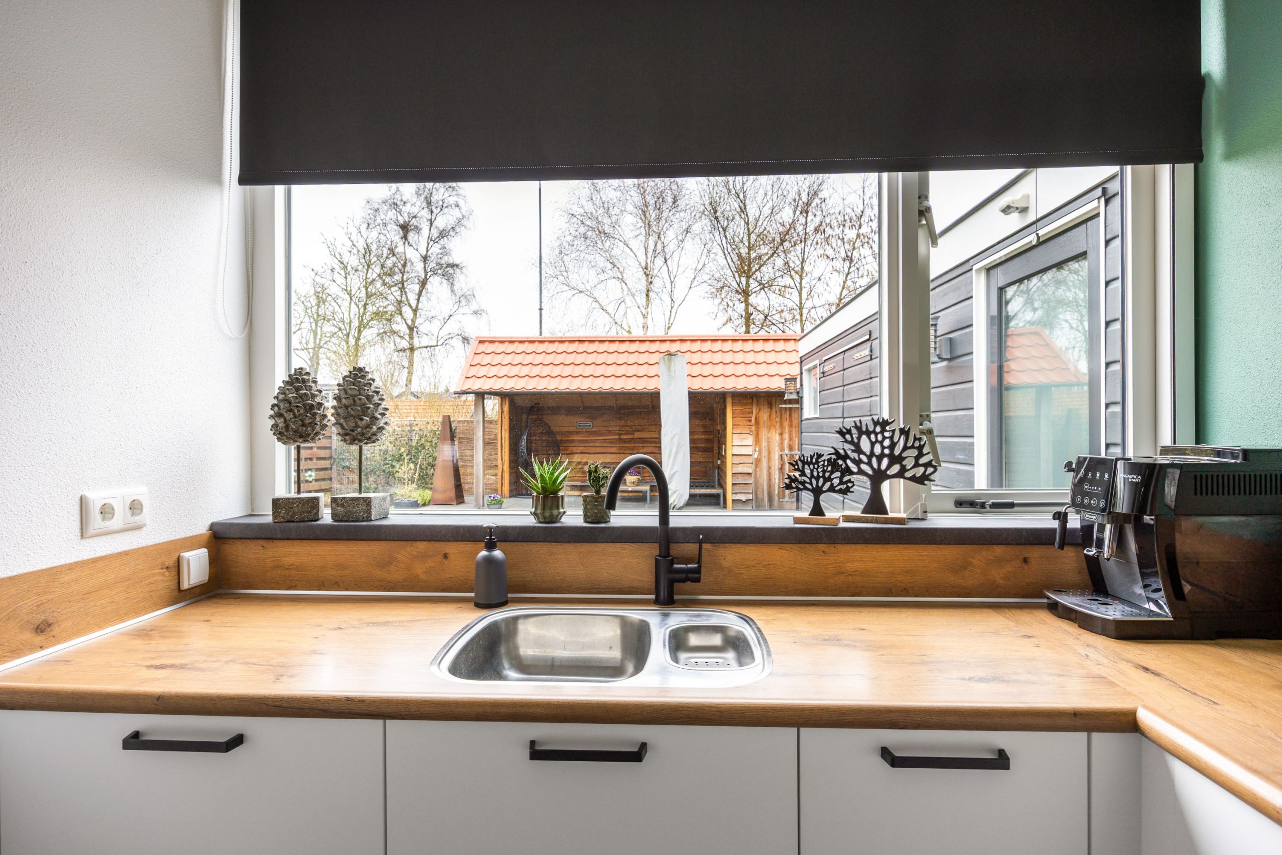 – Elektrische screens (zonwering) aan de voorzijde van de woning