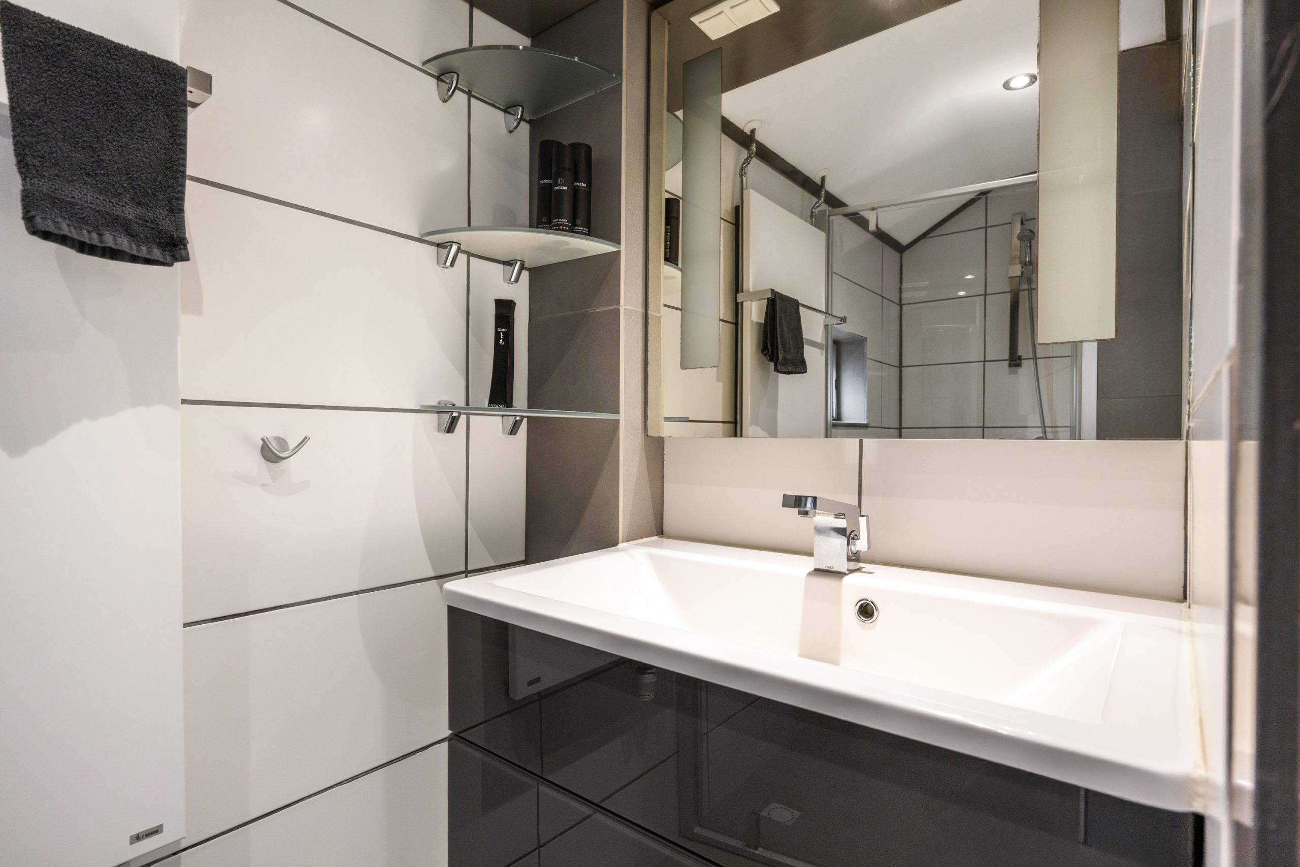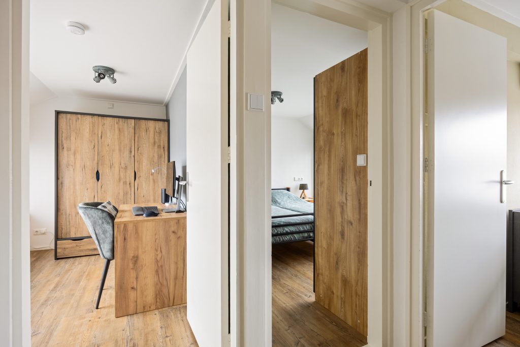 Vanaf de overloop heb je toegang tot 3 slaapkamers van respectievelijk ca. 5,5, 7,5 en 12,5m² en de keurige doucheruimte voorzien van inloopdouche en wastafelmeubel.