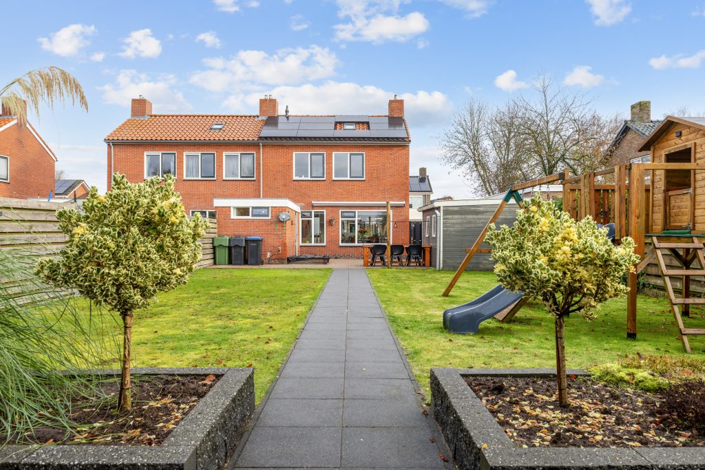 Deze goed onderhouden helft van een dubbel woonhuis biedt op de begane grond o.a. een verrassende leefruimte met een moderne keukeninrichting (2022) en een ruime bijkeuken, en op de verdieping drie comfortabele slaapkamers en een moderne badkamer (2022). Daarnaast beschikt de woning over een heerlijke royale tuin met veel privacy en o.a. een gezellige veranda/ terrasoverkapping.