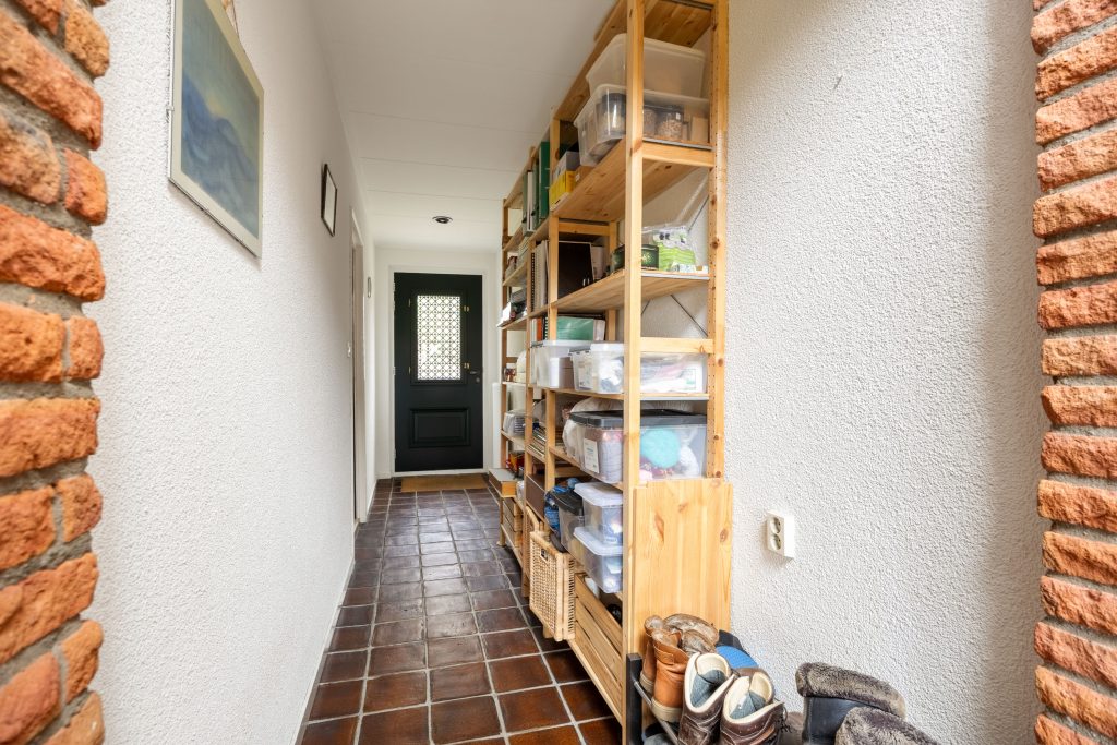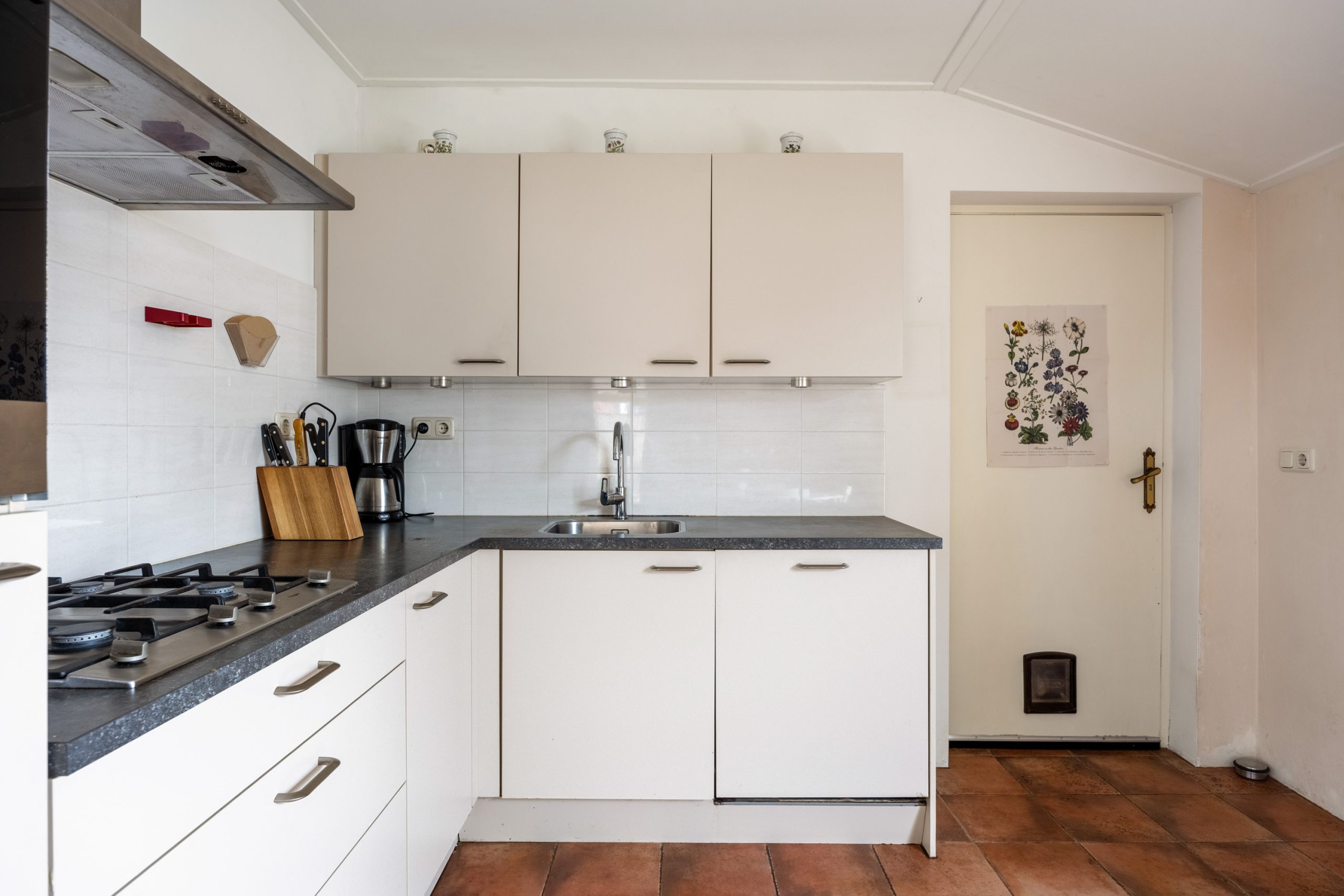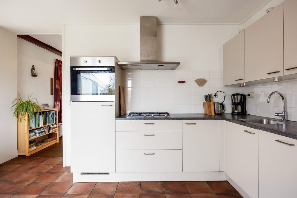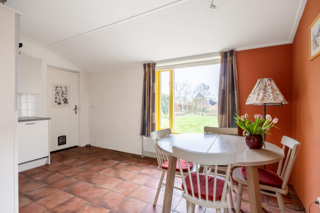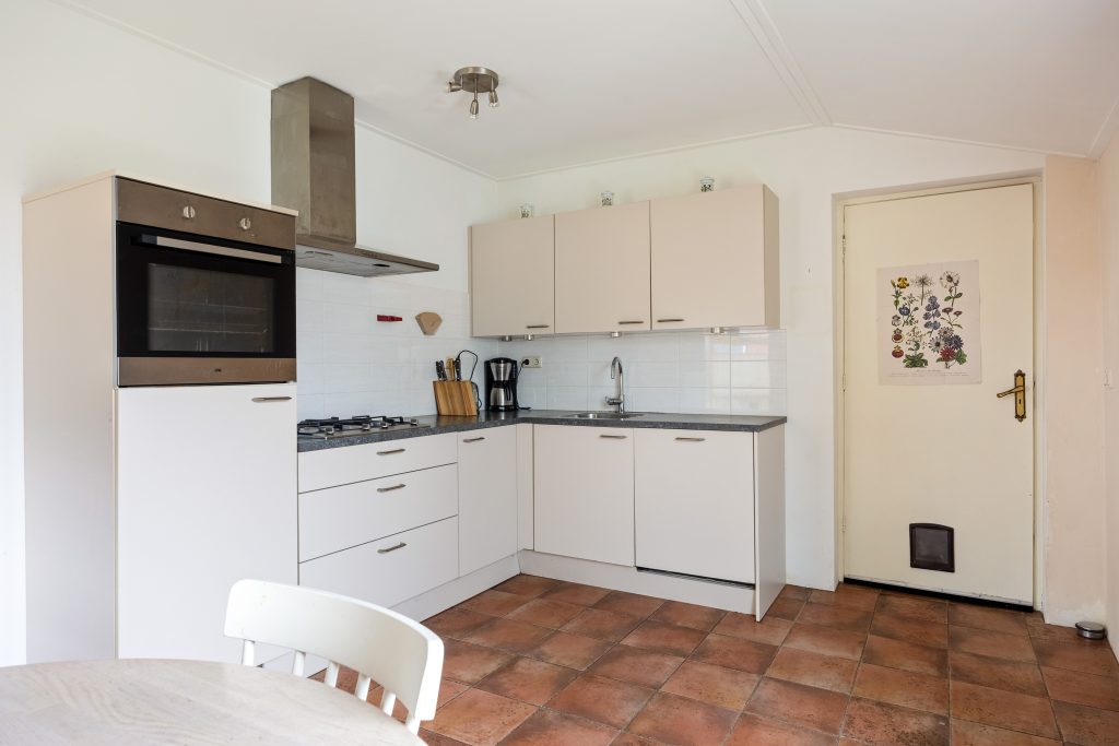 Bij binnenkomst door de voordeur kom je in de centrale gang met o.a. toegang tot de woonkamer. Deze ruime, sfeervolle kamer van ca. 27 m² heeft uitzicht op groen en een balkenplafond. Aangrenzend tref je de woonkeuken van ca. 14 m², met een nette keukeninrichting in hoekopstelling, voorzien van inbouwapparatuur zoals een 4-pits kookplaat, afzuigkap, vaatwasser, koelkast en oven. Vanuit de keuken is er toegang tot de ruime achterhal met o.a. de trapopgang en een deur naar zowel de tuin als de oprit. Tevens bevinden zich hier de witgoedruimte, het toilet en de badkamer (2013) met inloopdouche en wastafel. Tot slot is er de slaapkamer op de begane grond van ca. 23 m², met schouw en balkenplafond.