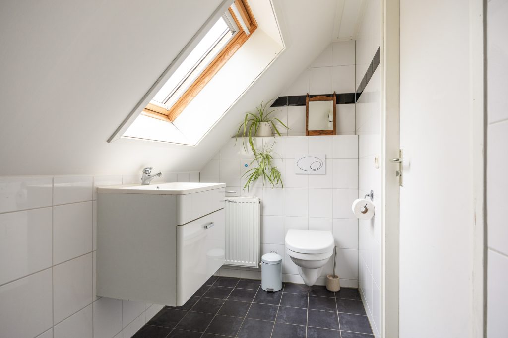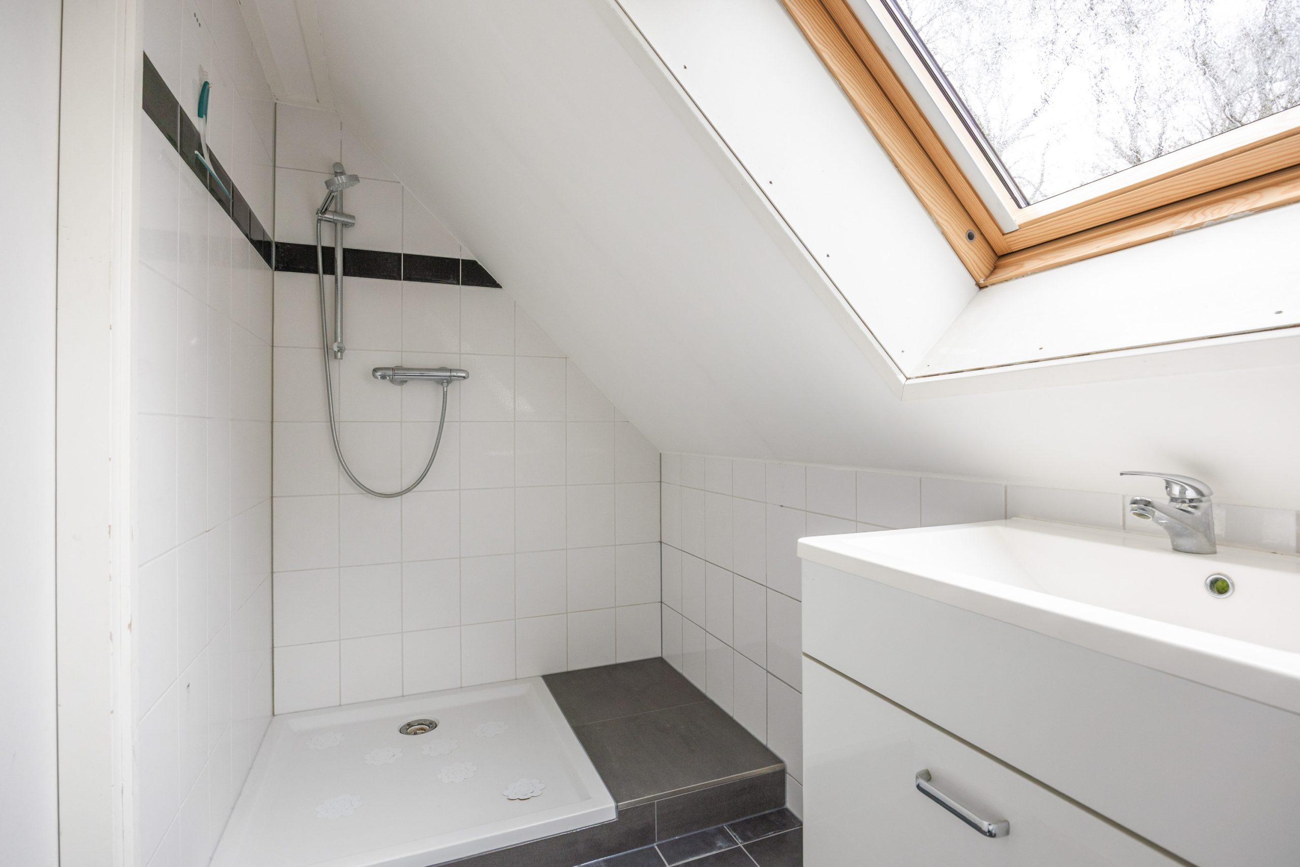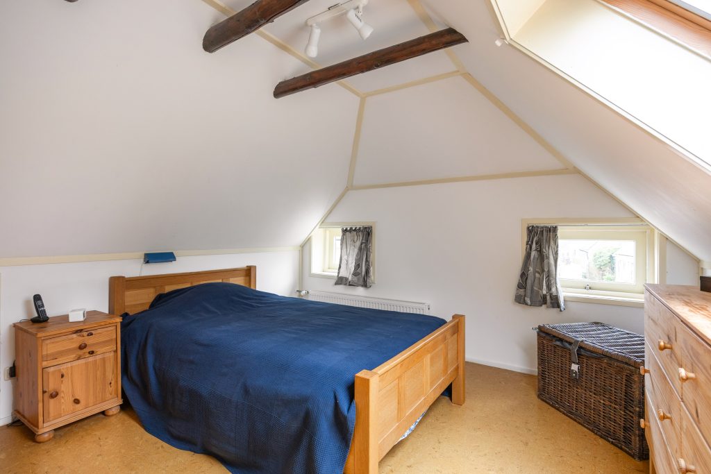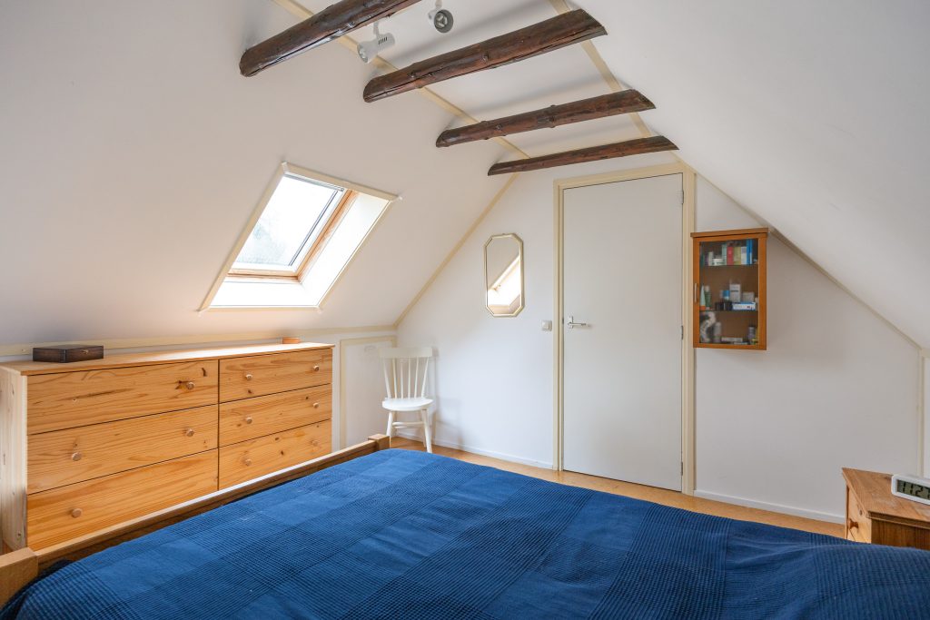De verdieping bestaat uit een ruime overloop met dakkapel en fraai zicht op de tuin, een tweede badkamer voorzien van inloopdouche, tweede toilet en wastafelmeubel, en twee sfeervolle slaapkamers van respectievelijk ca. 8,5 en 9,5 m² (gemeten op 1,5 m hoogte i.v.m. de schuine wanden).