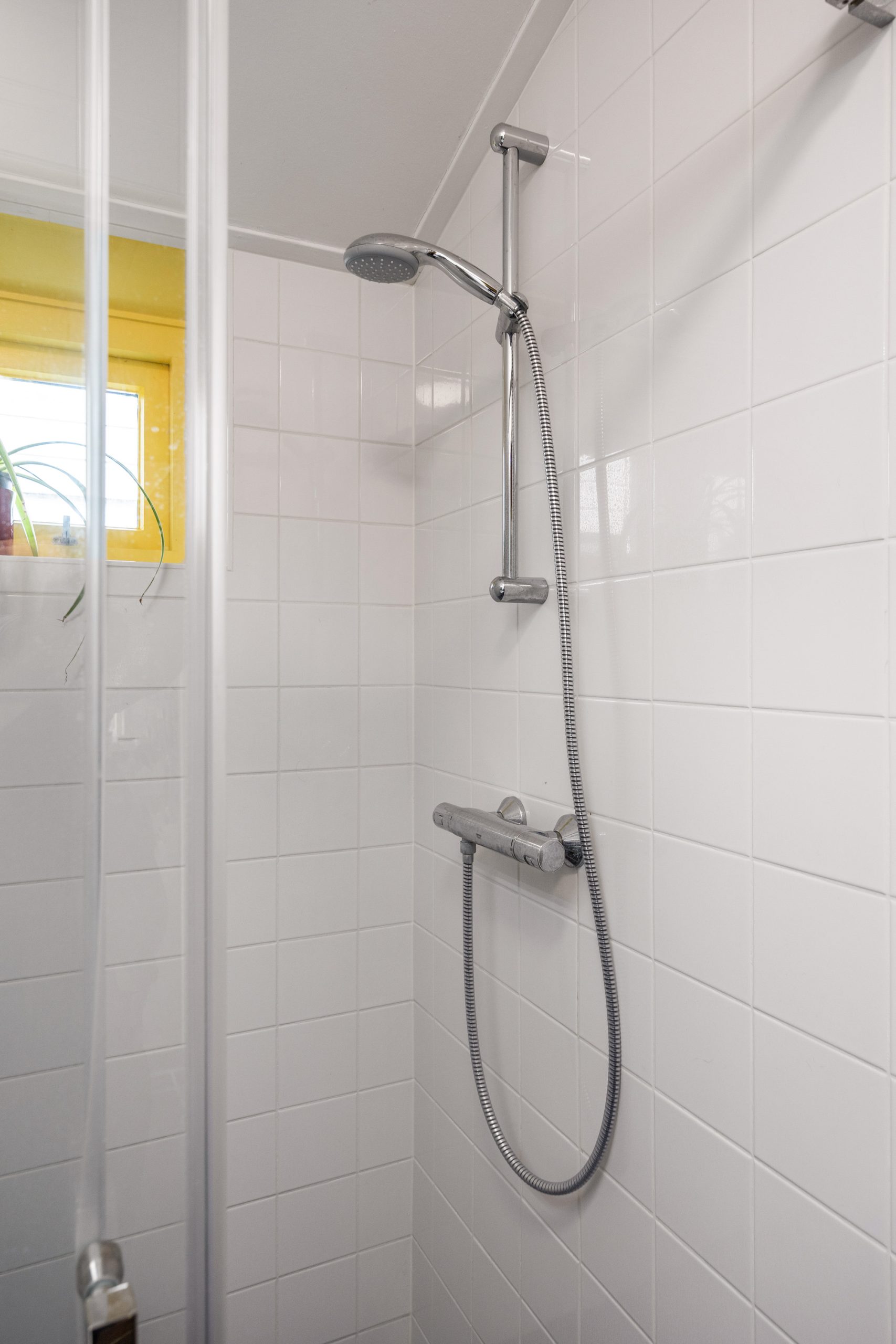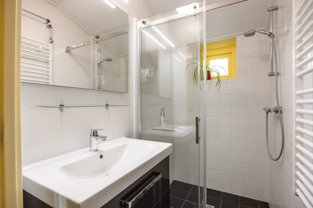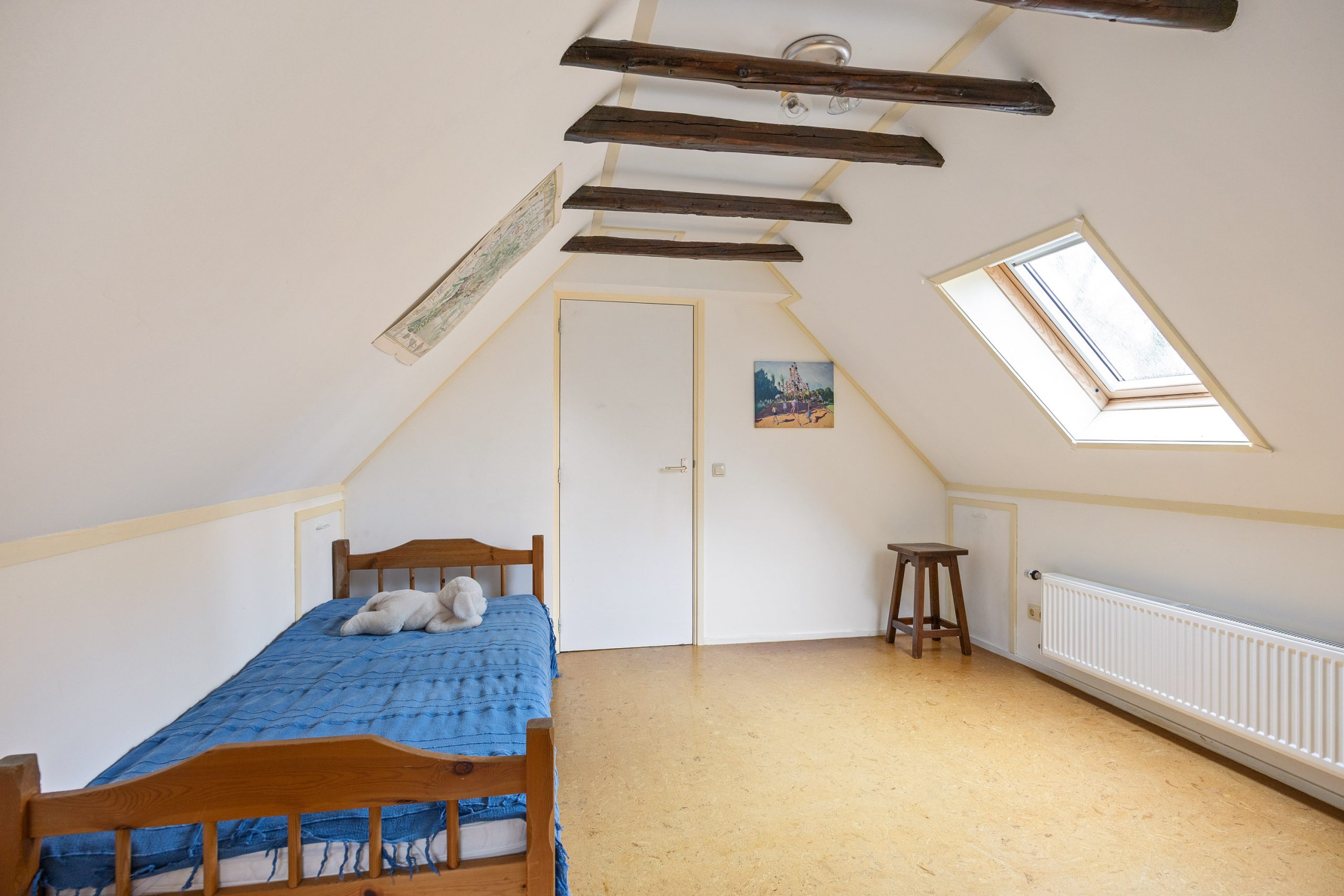 De verdieping bestaat uit een ruime overloop met dakkapel en fraai zicht op de tuin, een tweede badkamer voorzien van inloopdouche, tweede toilet en wastafelmeubel, en twee sfeervolle slaapkamers van respectievelijk ca. 8,5 en 9,5 m² (gemeten op 1,5 m hoogte i.v.m. de schuine wanden).
