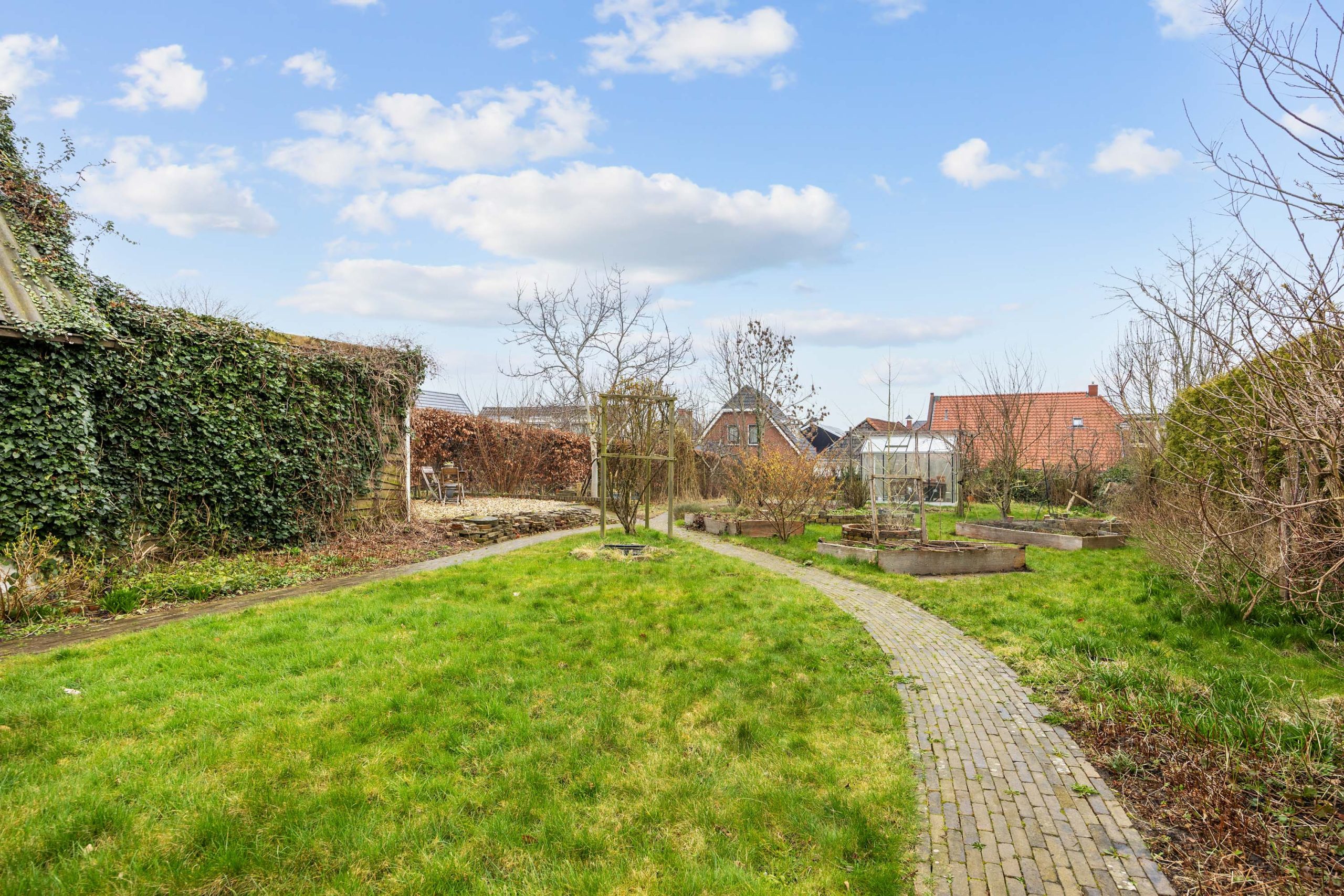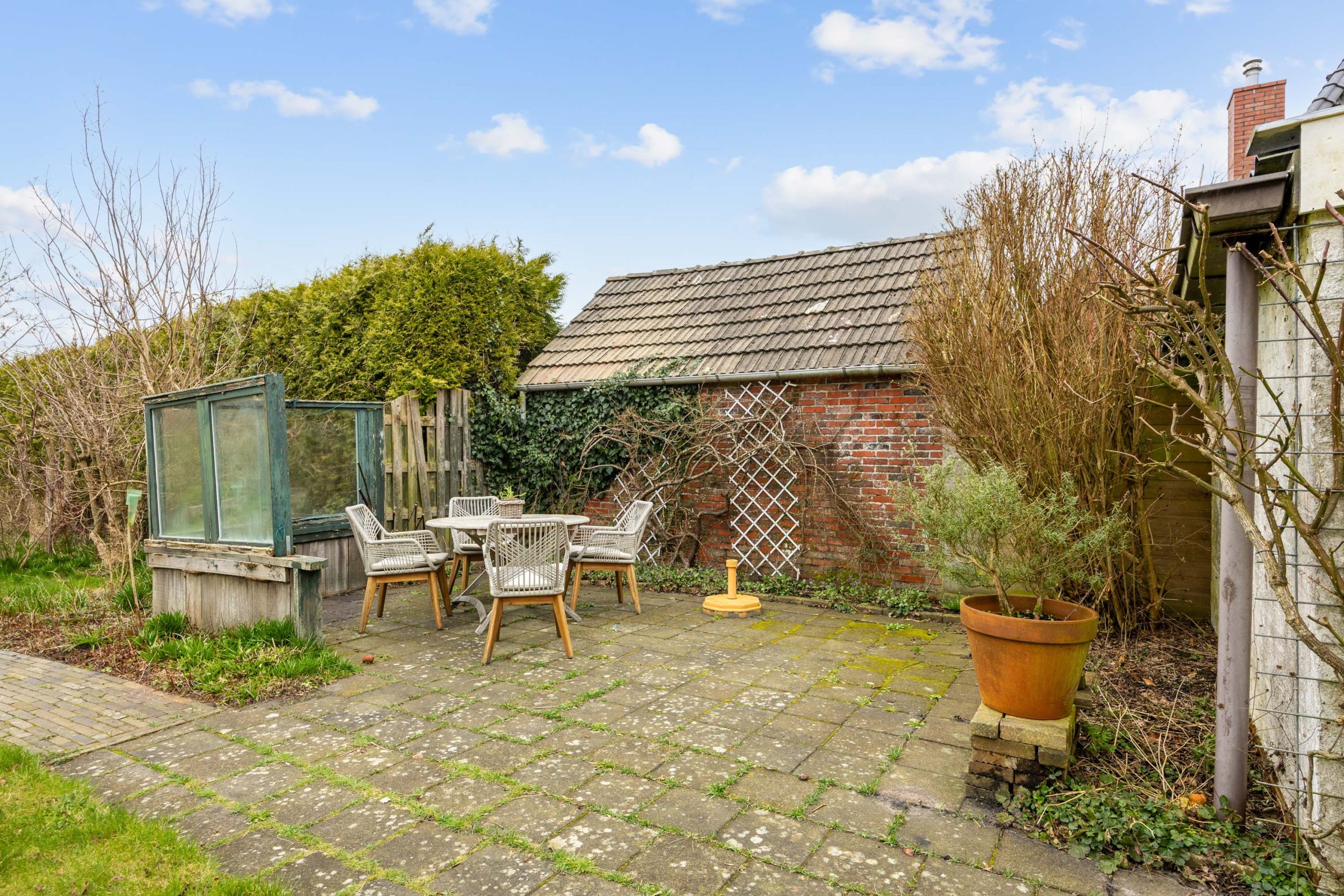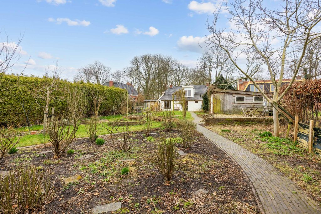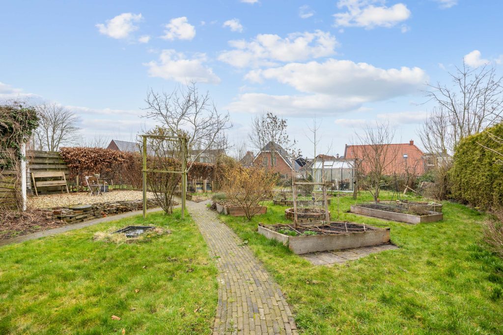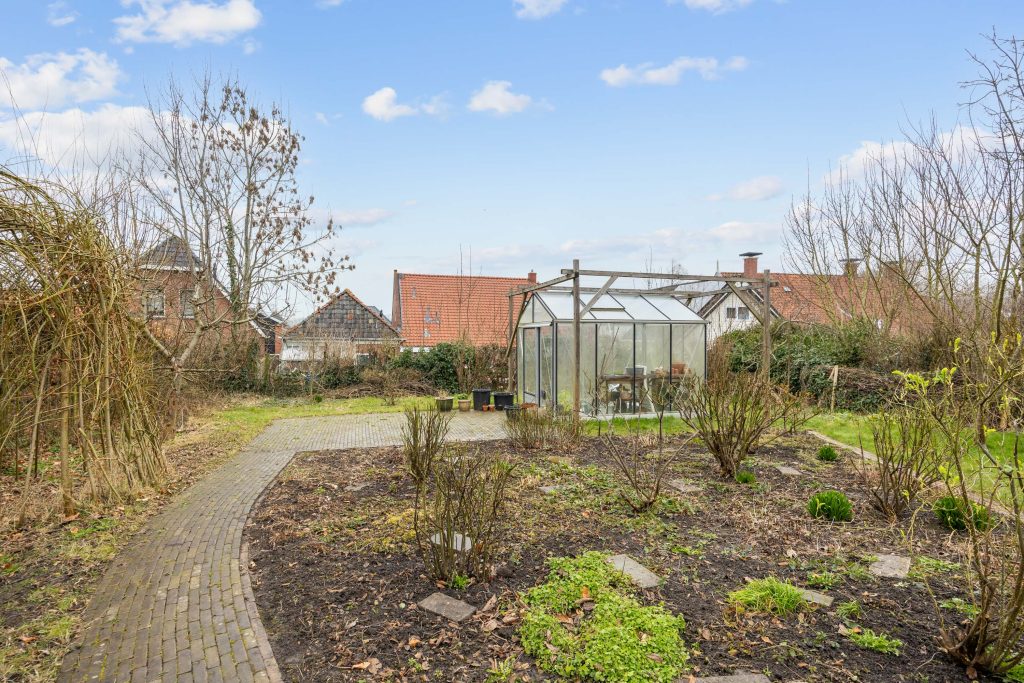 De royale tuin is gelegen op het noordwesten en biedt gedurende de dag zon en veel privacy. Deze fraai ingerichte tuin bestaat uit borders, terras, rozentuin, stenen tuinberging, een tuinkas en een boomgaard met o.a. appels, peren en bessen. De tuin wordt natuurlijk beheerd.
