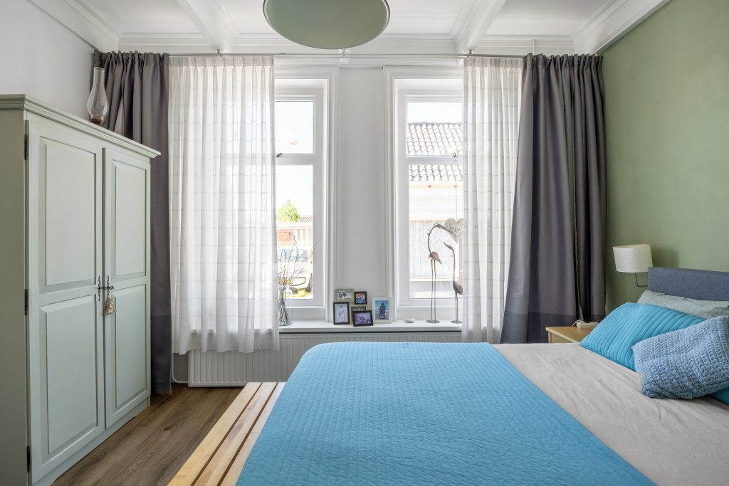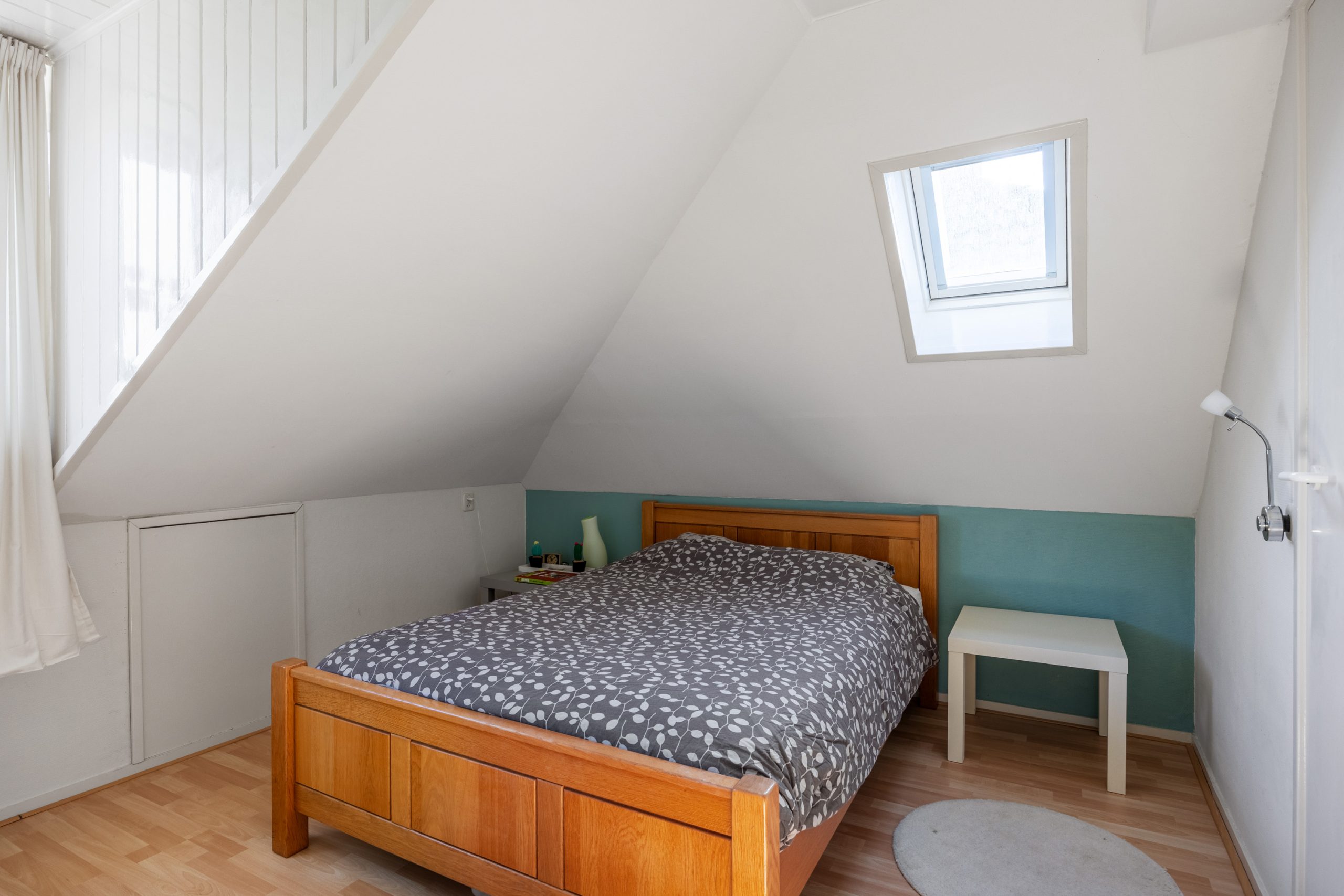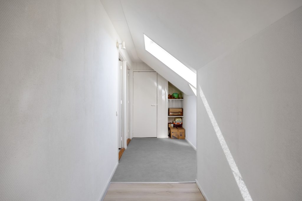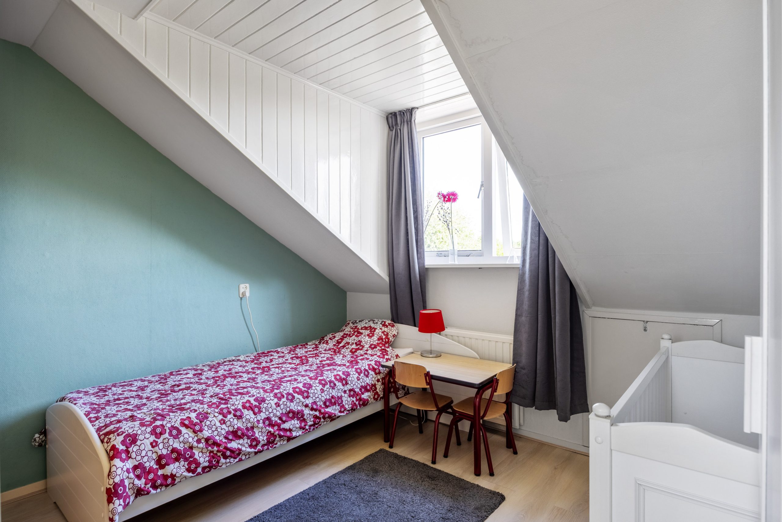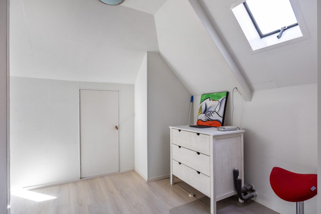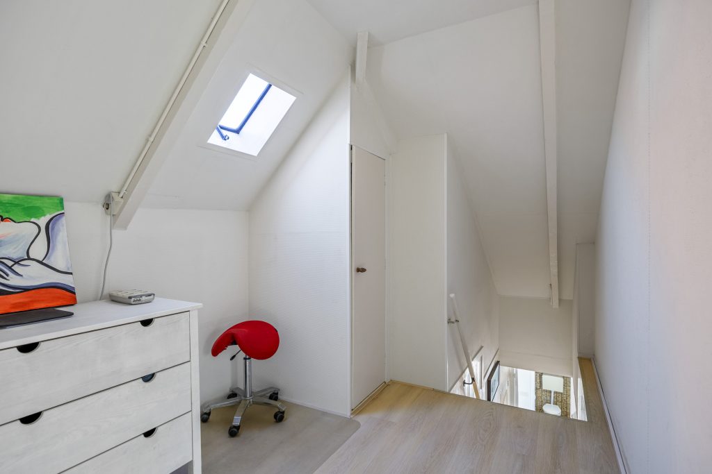Op de eerste verdieping leidt de overloop naar twee slaapkamers. De slaapkamer aan de voorzijde (circa 7 m²) is voorzien van een dakkapel en bergruimte. De tweede slaapkamer (ca. 8 m²) heeft eveneens een dakkapel en beschikt over een vaste kast en extra bergruimte. Daarnaast is er op de overloop een vaste kast aanwezig, waardoor de verdieping praktisch is ingericht en goed benut kan worden.