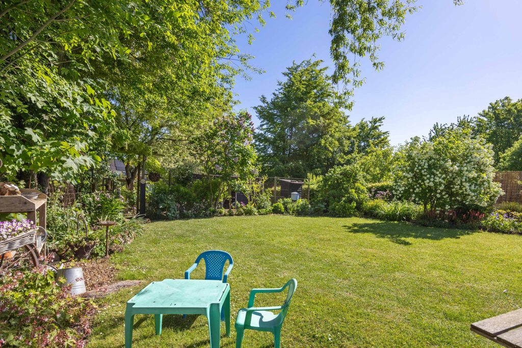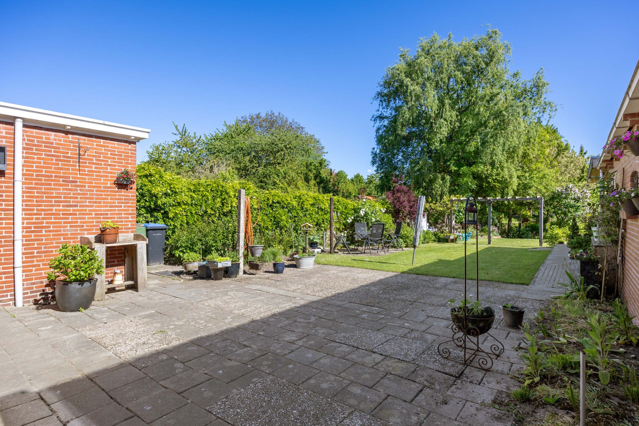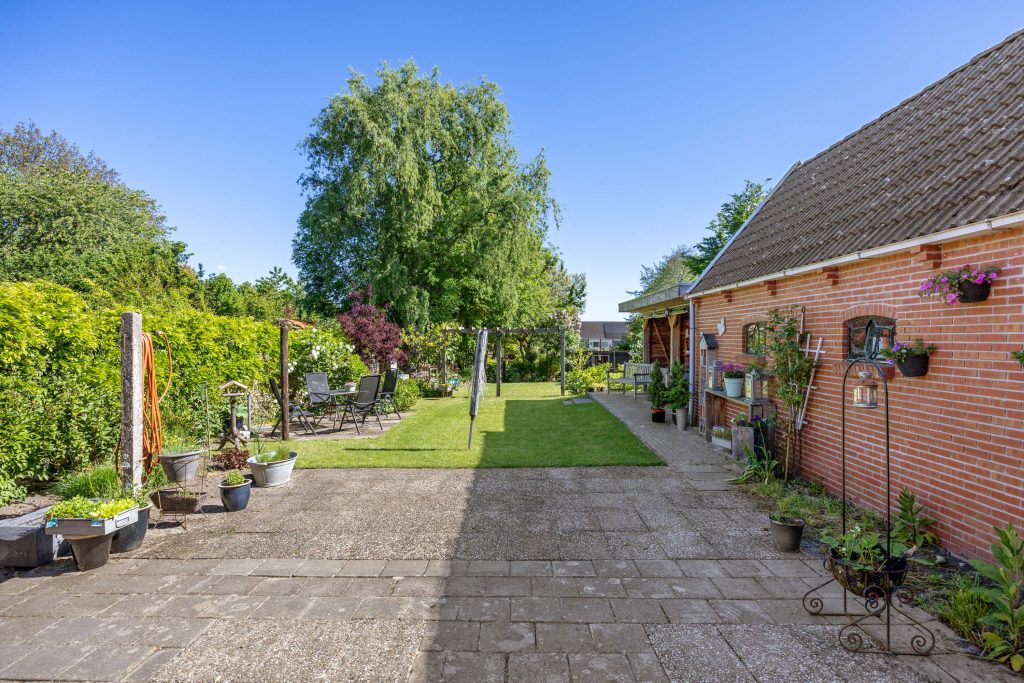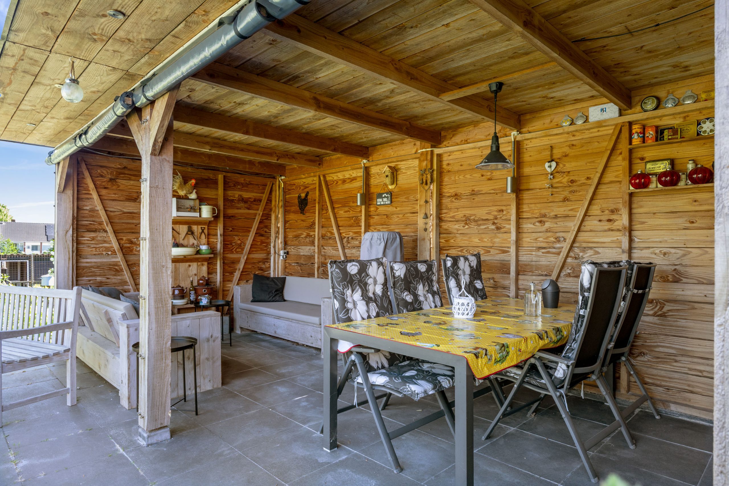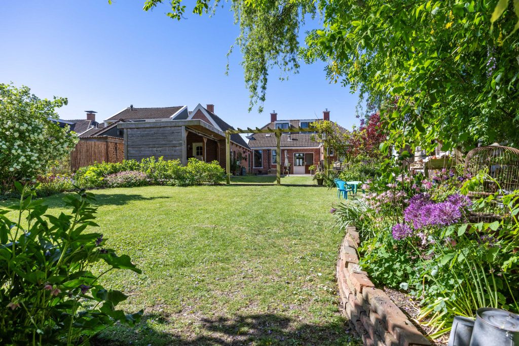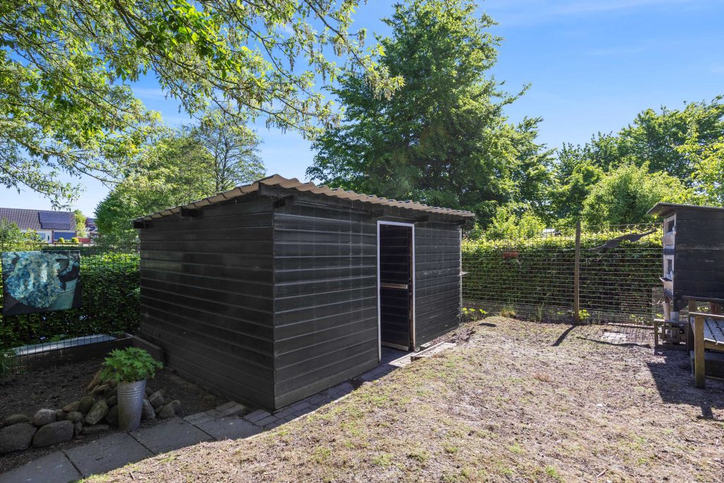 De woning beschikt over een eigen oprit met parkeergelegenheid en een ruime vrijstaande schuur die in 2017 volledig opnieuw is opgebouwd. Deze ruimte is uitstekend geschikt voor opslag, maar ook zeer geschikt voor een hobbyruimte, atelier of praktijk aan huis. De diepe achtertuin van circa 38 meter is fraai aangelegd met veel groen en diverse borders. Dankzij de ligging zonder directe achterburen is er volop rust en privacy. Onder de overkapping is het bovendien heerlijk vertoeven in alle seizoenen.
