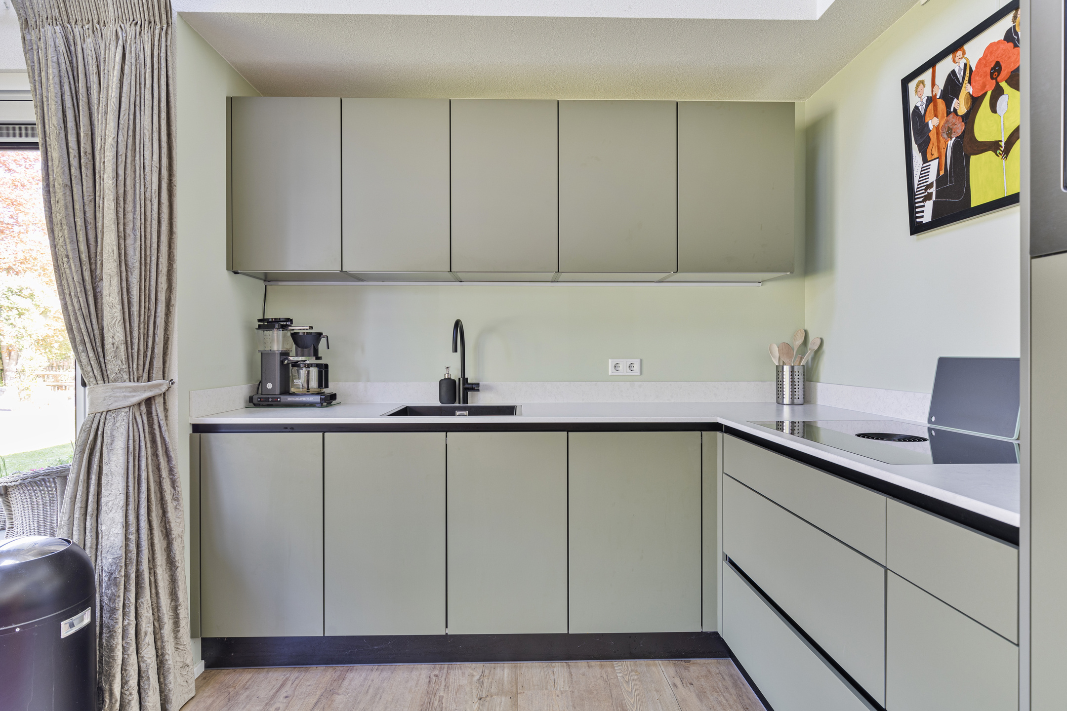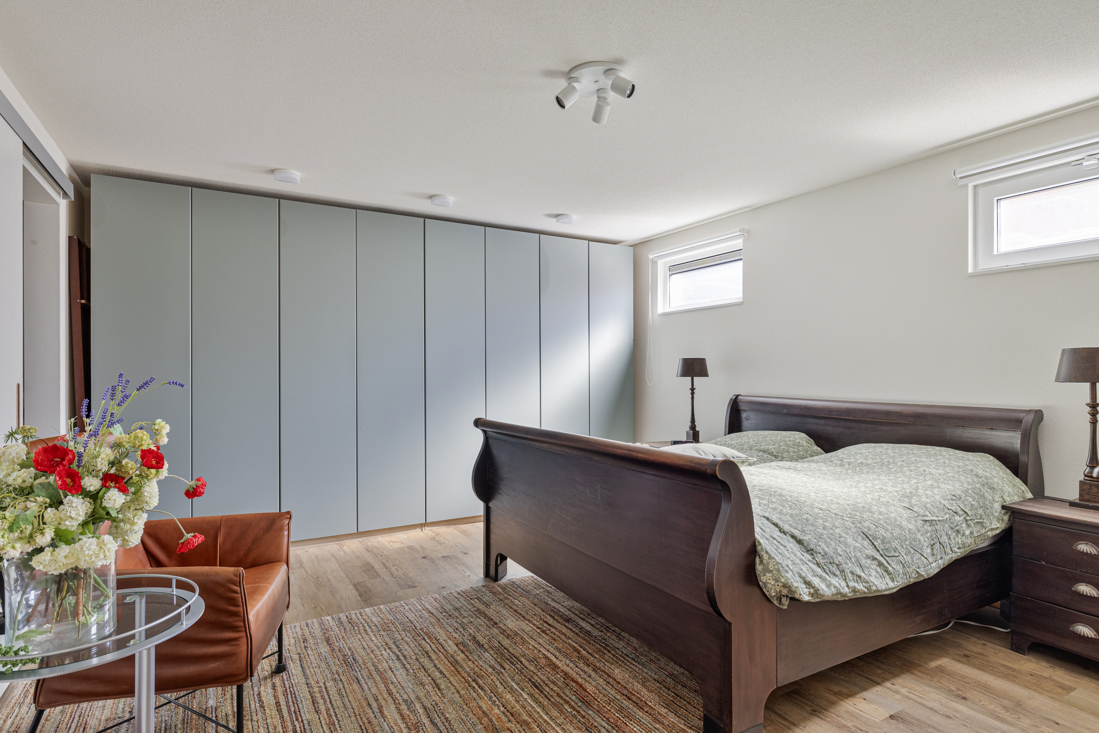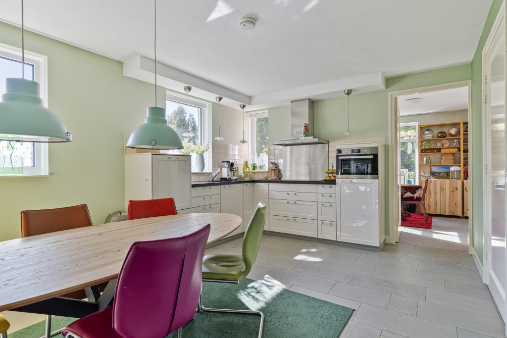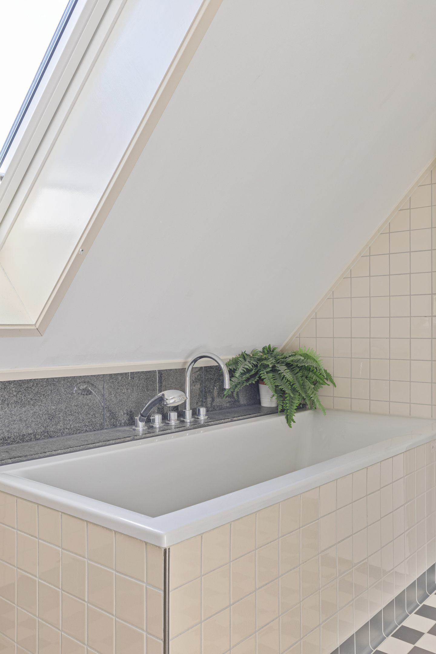 Vanuit de hal met kastruimte, waterontharder en modern toilet is er toegang tot de bergruimte en tot de leefruimte. Deze fraaie extra leefruimte van bijna 60m² bestaat uit een echte woonkeuken en een gezellige zithoek. Het geheel beschikt over 2 deuren naar de tuin/ terras, 3x een dakraam en een moderne keukeninrichting in hoekopstelling (2020) voorzien van inbouwapparatuur zoals een inductiekookplaat met geïntegreerde afzuiging, vaatwasser, combi-magnetron, close-in-boiler en koelkast. Vervolgens kom je in de royale slaapkamer van ca. 21,5m² met eigen moderne, ruime badkamer voorzien van wastafelmeubel, 2e toilet en inloopdouche.