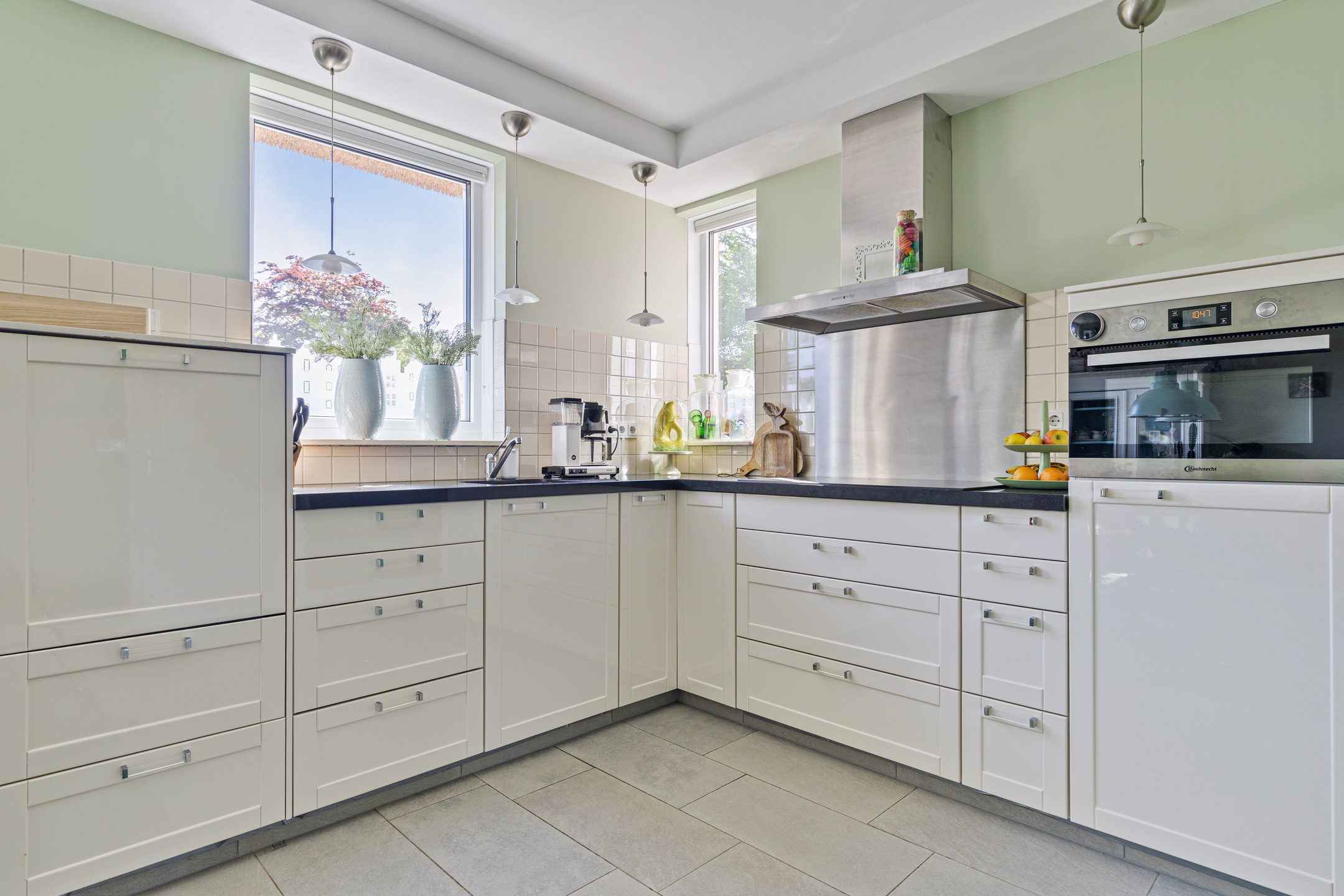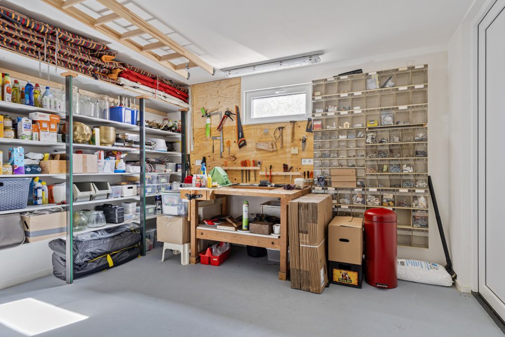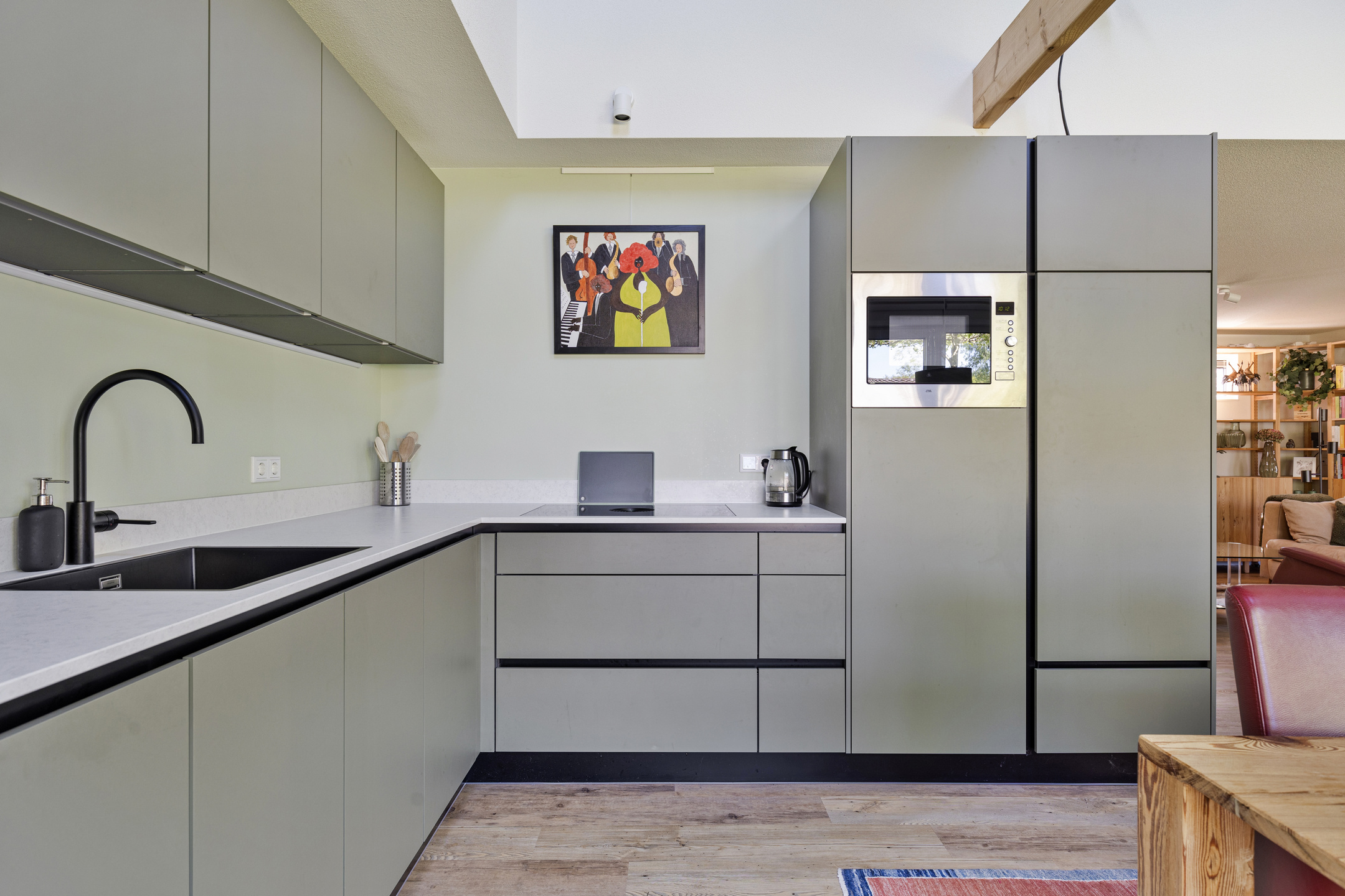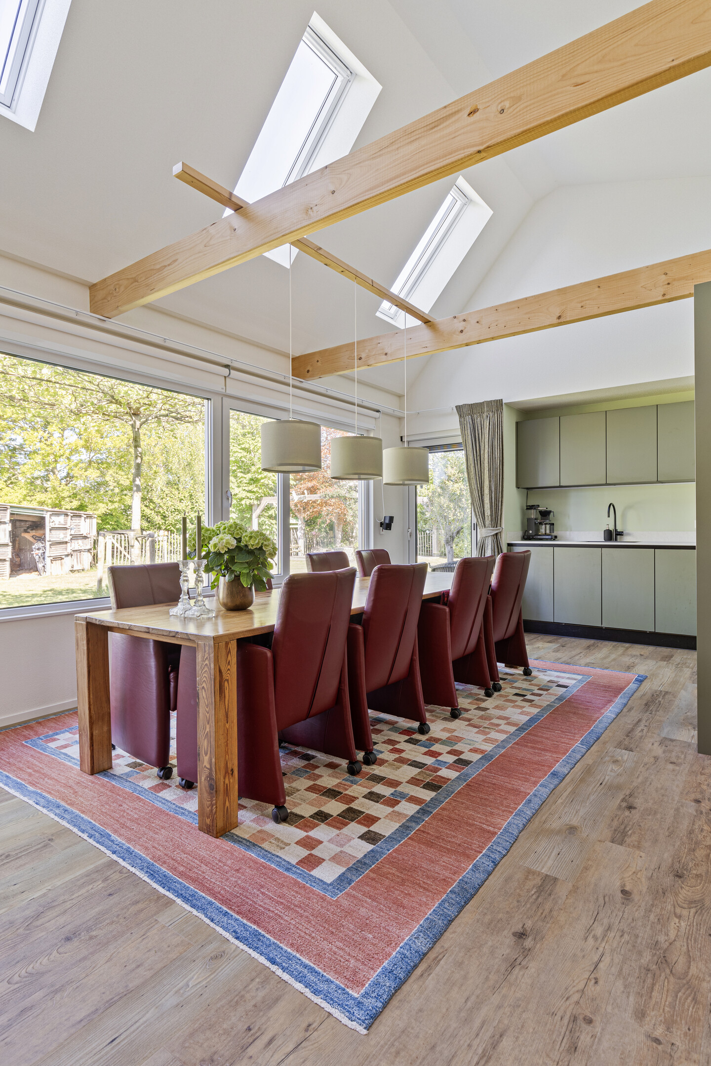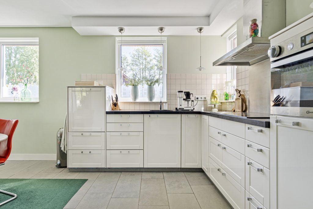 Vanuit de hal met kastruimte, waterontharder en modern toilet is er toegang tot de bergruimte en tot de leefruimte. Deze fraaie extra leefruimte van bijna 60m² bestaat uit een echte woonkeuken en een gezellige zithoek. Het geheel beschikt over 2 deuren naar de tuin/ terras, 3x een dakraam en een moderne keukeninrichting in hoekopstelling (2020) voorzien van inbouwapparatuur zoals een inductiekookplaat met geïntegreerde afzuiging, vaatwasser, combi-magnetron, close-in-boiler en koelkast. Vervolgens kom je in de royale slaapkamer van ca. 21,5m² met eigen moderne, ruime badkamer voorzien van wastafelmeubel, 2e toilet en inloopdouche.