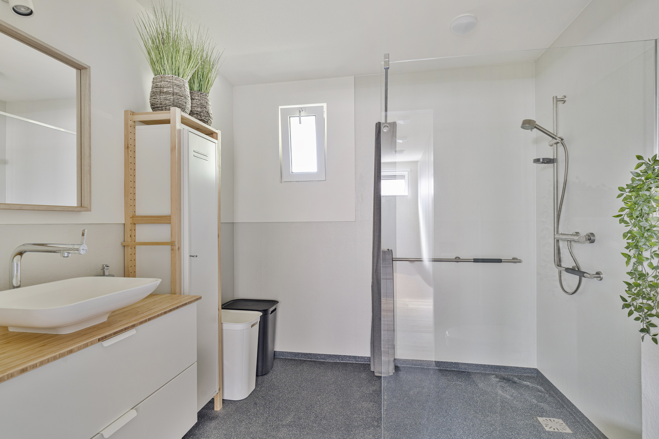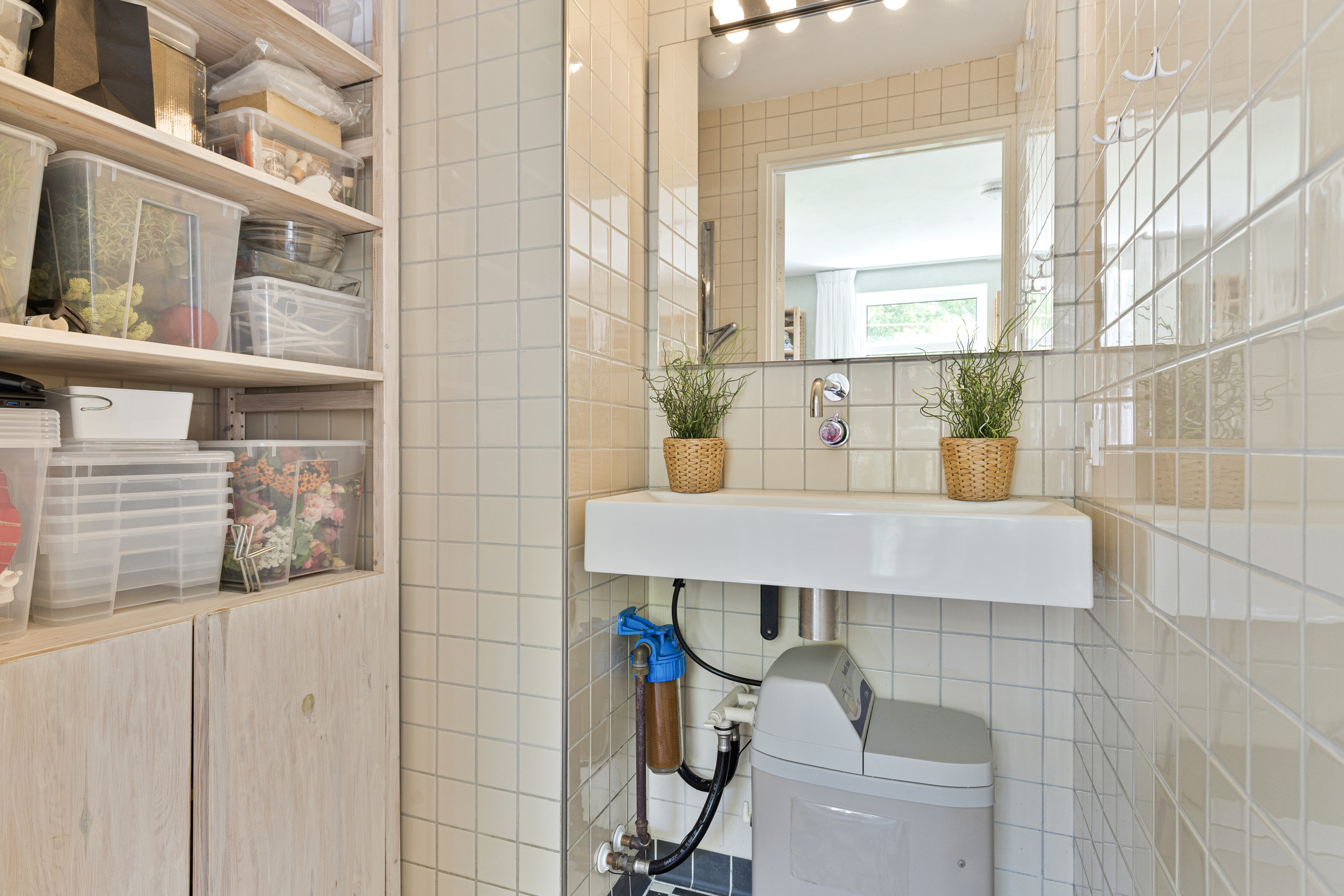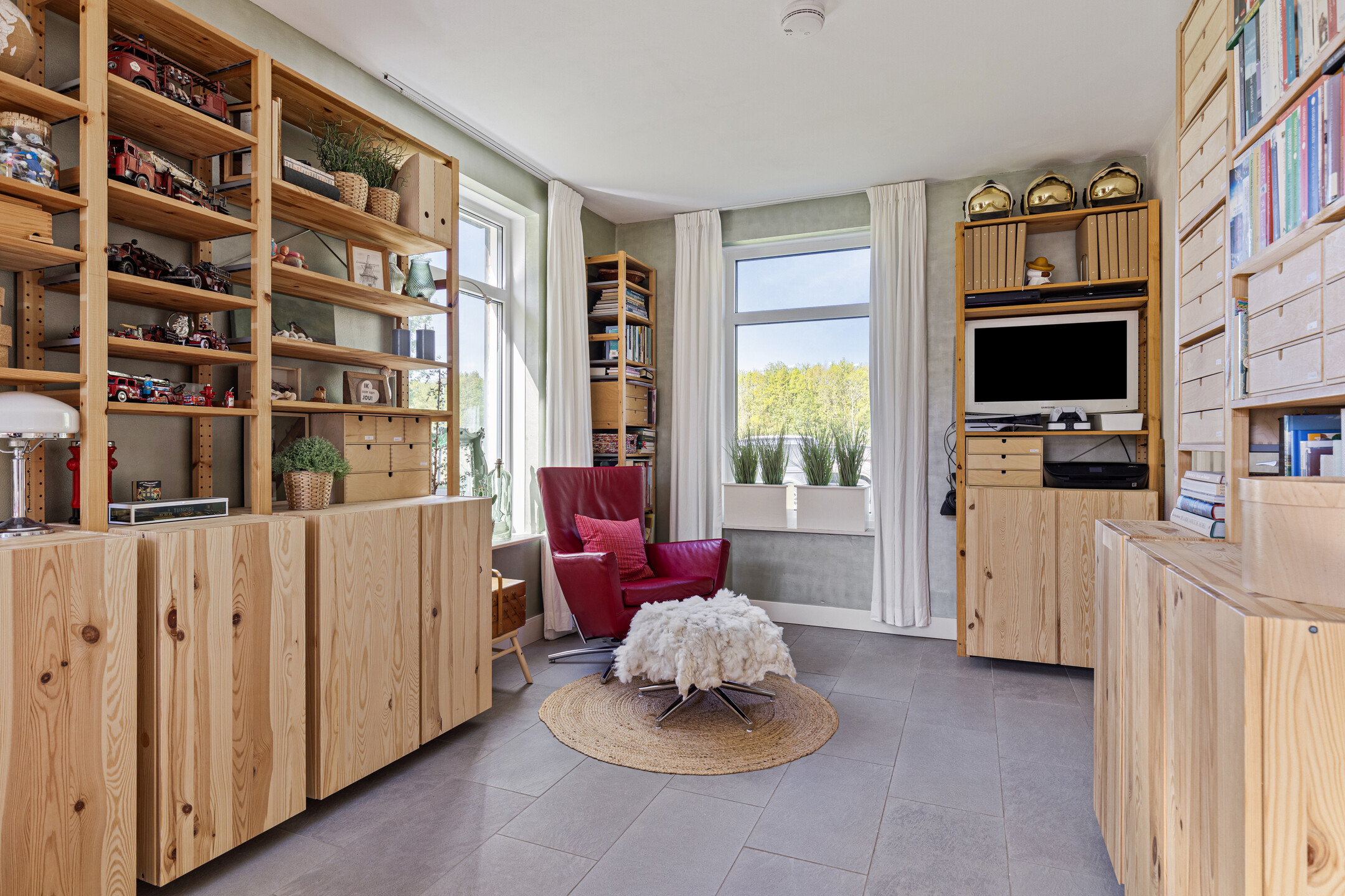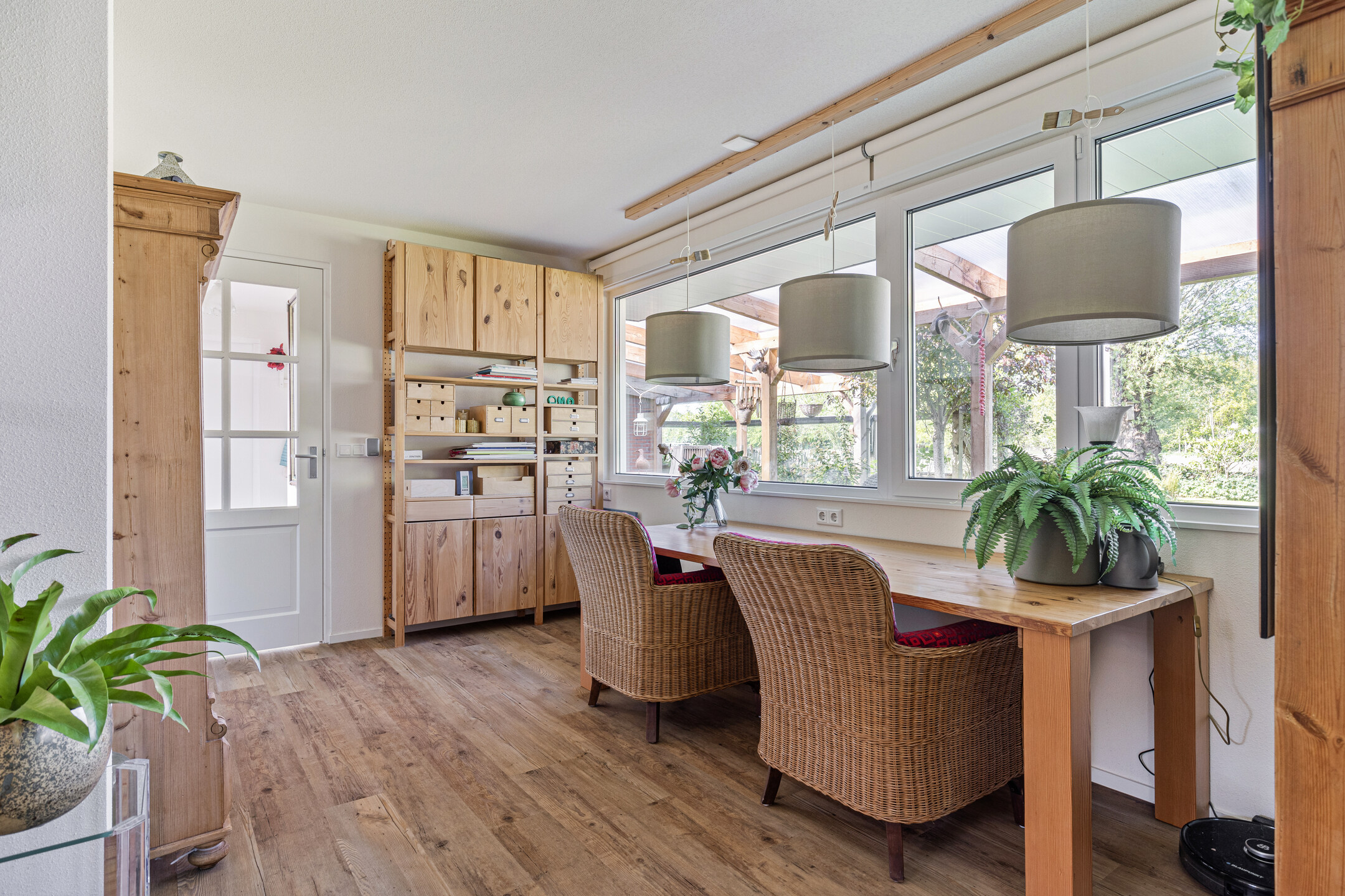 Eigen toegang over de oprit aan de rechterzijde van de woning of vanuit de achterentree van het voorhuis. Bovendien is ook dit deel van de woning volledig voorzien van vloerverwarming en pvc-vloer.