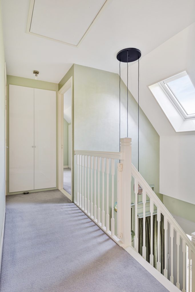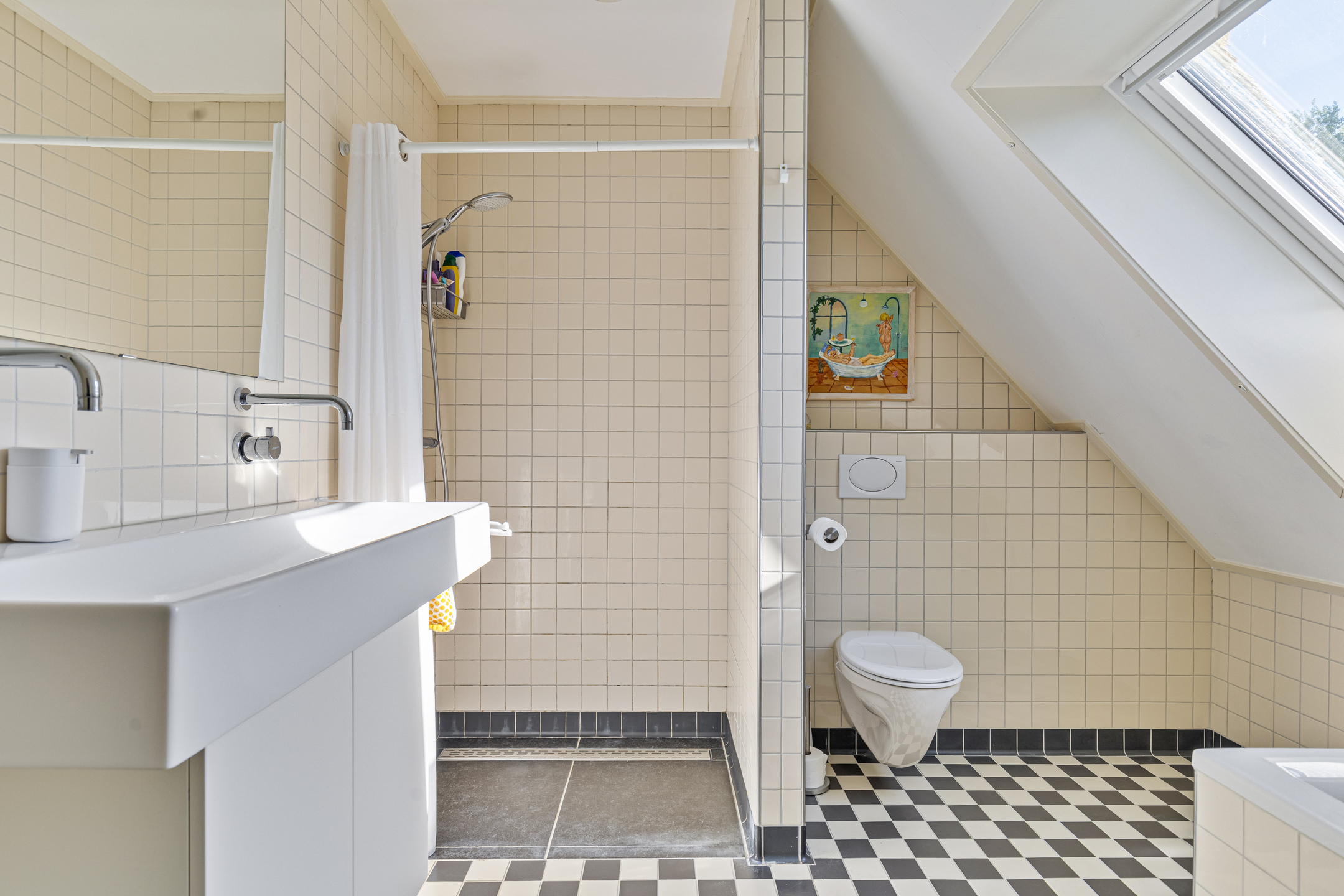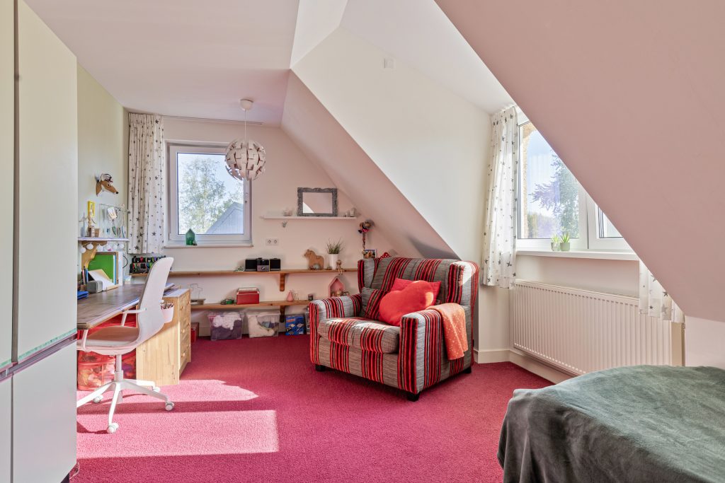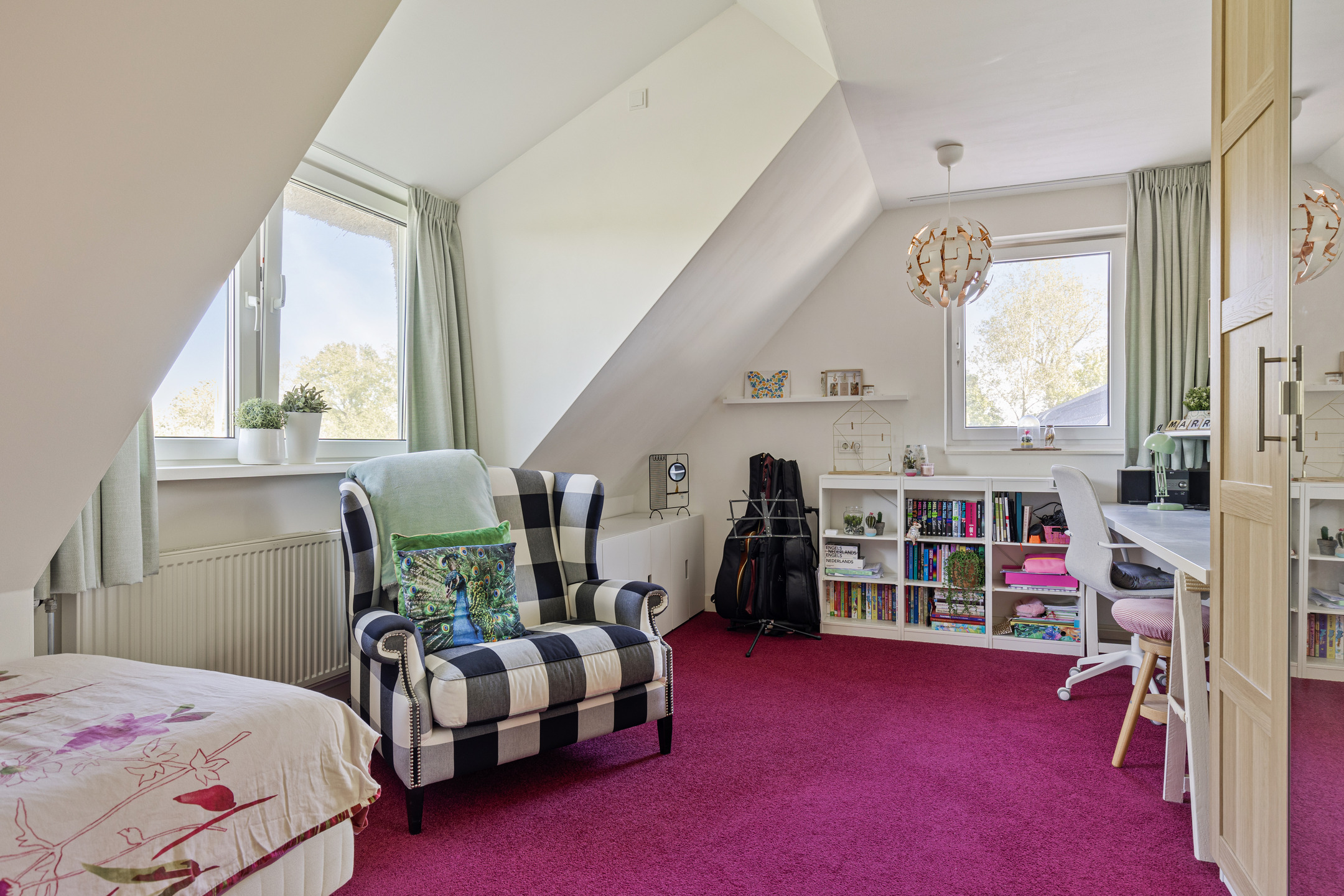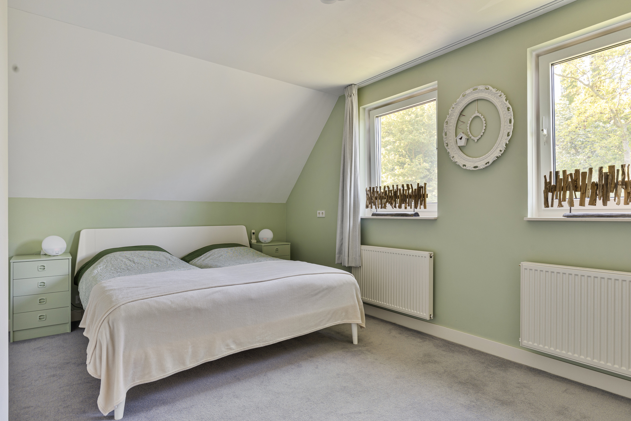 Vanuit de zijentree is er middels een vaste trap, toegang tot de verdieping. Deze bestaat uit een ruime overloop met kastruimte, vlizotrap naar bergzolder en toegang tot de drie prachtige, sfeervolle slaapkamers van resp. ca. 15,5, 16, en 20m², waarbij de grootste slaapkamer is voorzien van vaste kastenwand en de beide andere slaapkamers zijn voorzien van een dakkapel. Bovendien is er nog een mooie badkamer v.v. vloerverwarming en een ligbad, dubbel wastafelmeubel, toilet en een ruime inloopdouche.