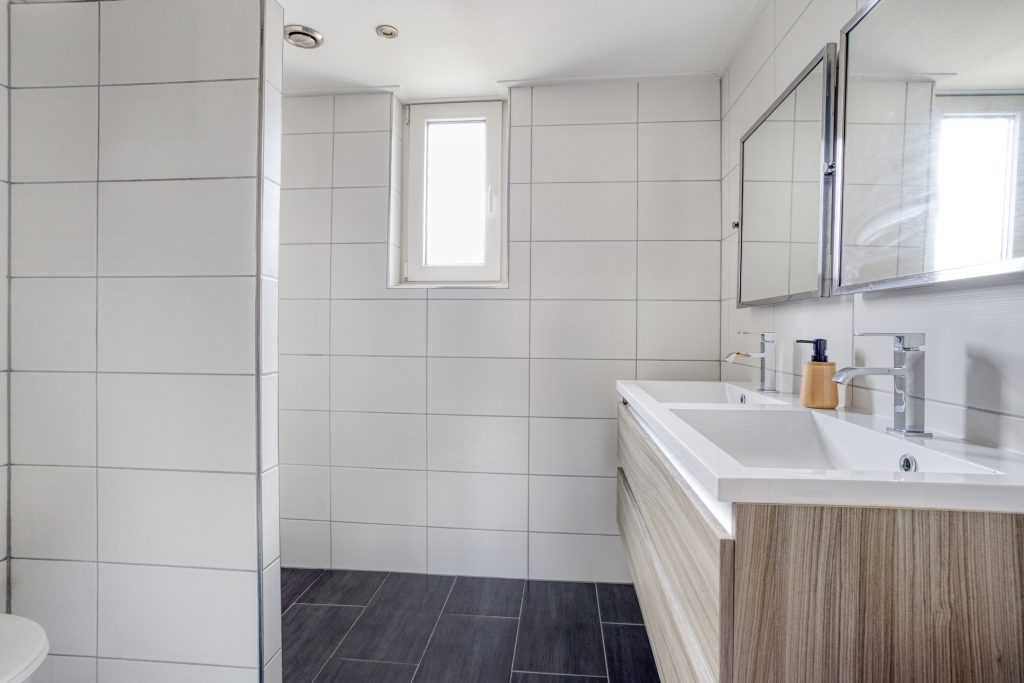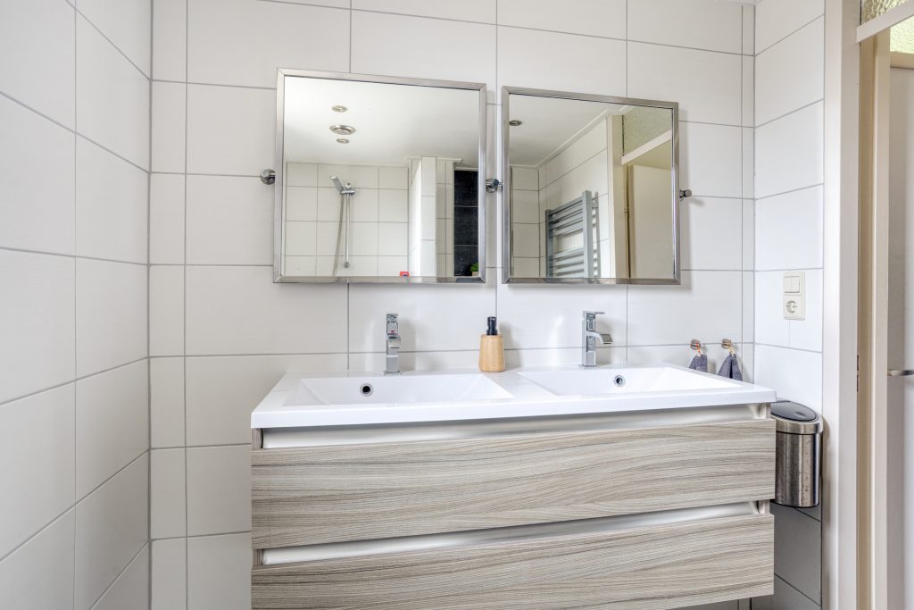 Vanaf de overloop heb je toegang tot de 3 slaapkamers van resp. ca. 7, 9,5 en 12,5m² en de moderne badkamer (2012) met dubbel wastafelmeubel, inloopdouche, mechanische ventilatie en tweede toilet.