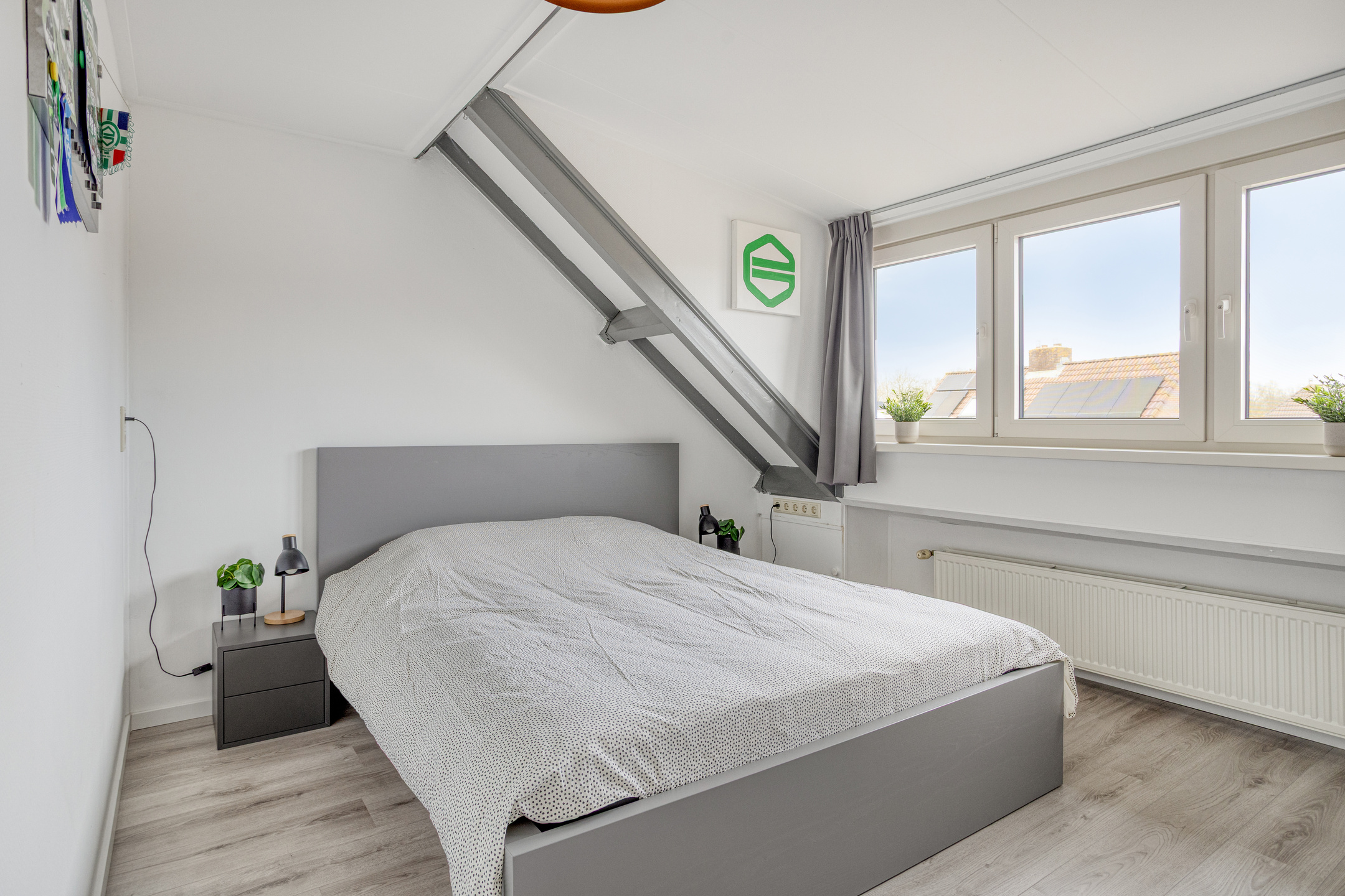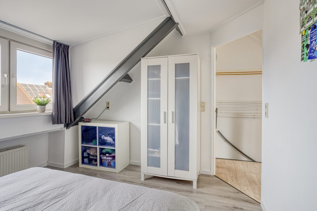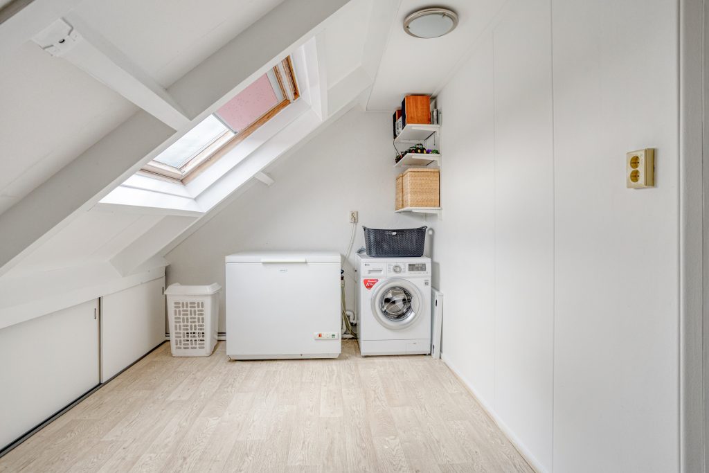 De tweede verdieping is bereikbaar middels een vaste trap en bestaat uit een overloop met witgoedaansluitingen, cv-ketel, extra bergruimte en een fraaie zolderkamer/ slaapzolder van ca. 10,5m² met fraaie dakkapel (2025).